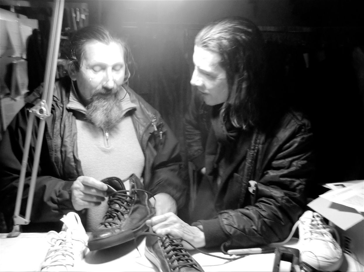 The very special shoes are made all by hand and developed only for us in San Zenone degli Ezzelini near the hill town of Asolo on the border of the provincias of Treviso and Vicenza by Giuseppe Rebesco, a totally unique master and artisan specialist who is both an expert at medieval footwear making, and advanced modern sport shoe construction. Since 2006, the designer and Mr. Rebesco have been slowly and steadily working together on extraordinary GBS shoe designs that provide our extremely discerning clothing clientele with a clear alternative to the industry's existing offering that maintain our standards for leadership in individual taste at a specific level, exquisite comfort and long term value, and of course, ethical production and environmental sustainability.