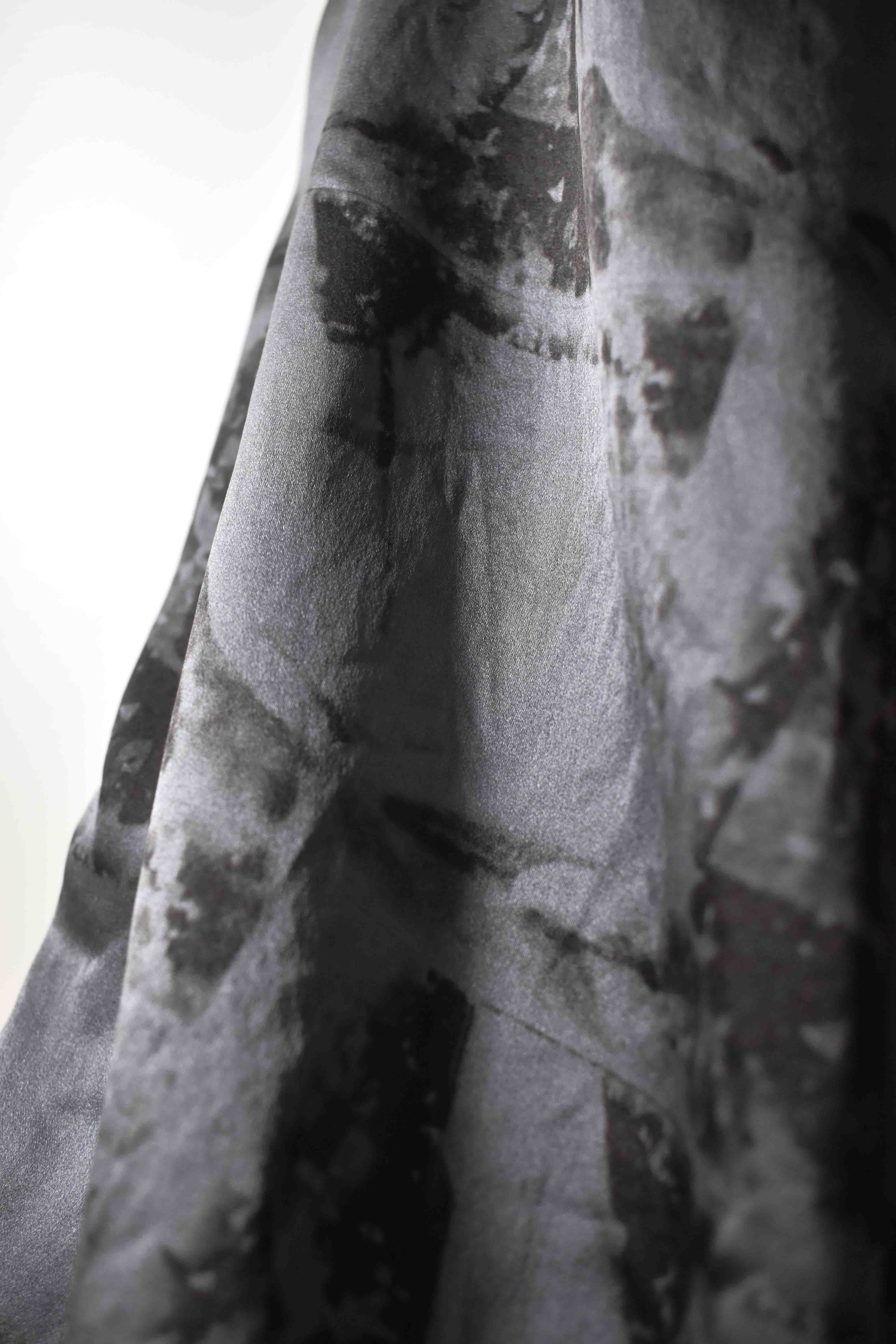 EXCLUSIVE HAND DYED PURE COMO SILK 16-MOMME RASO SATIN EXCLUSIVE “HAND AND LEAVES” PRINT LUXURY FABRIC, ADVANCED LEISURE DESIGN