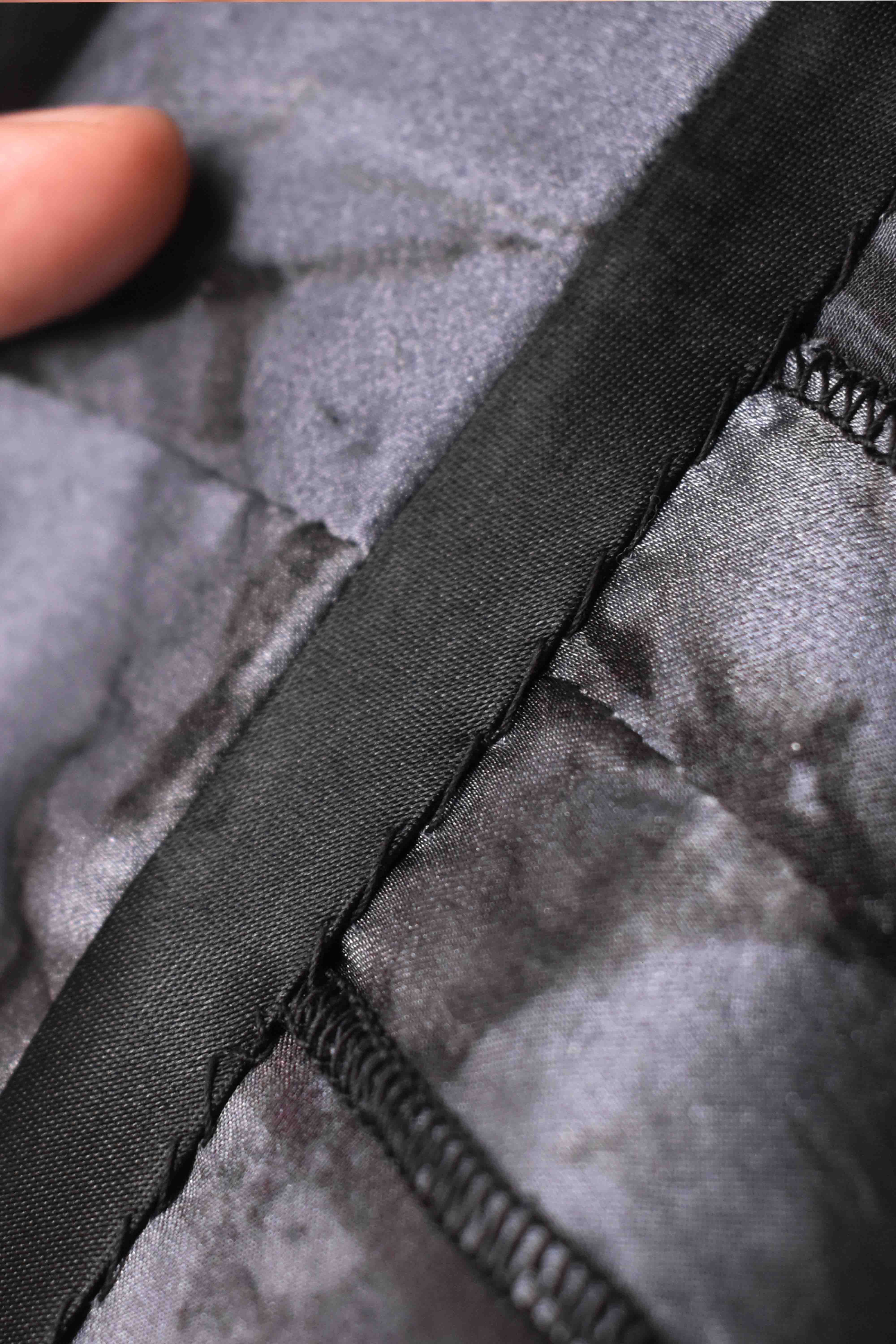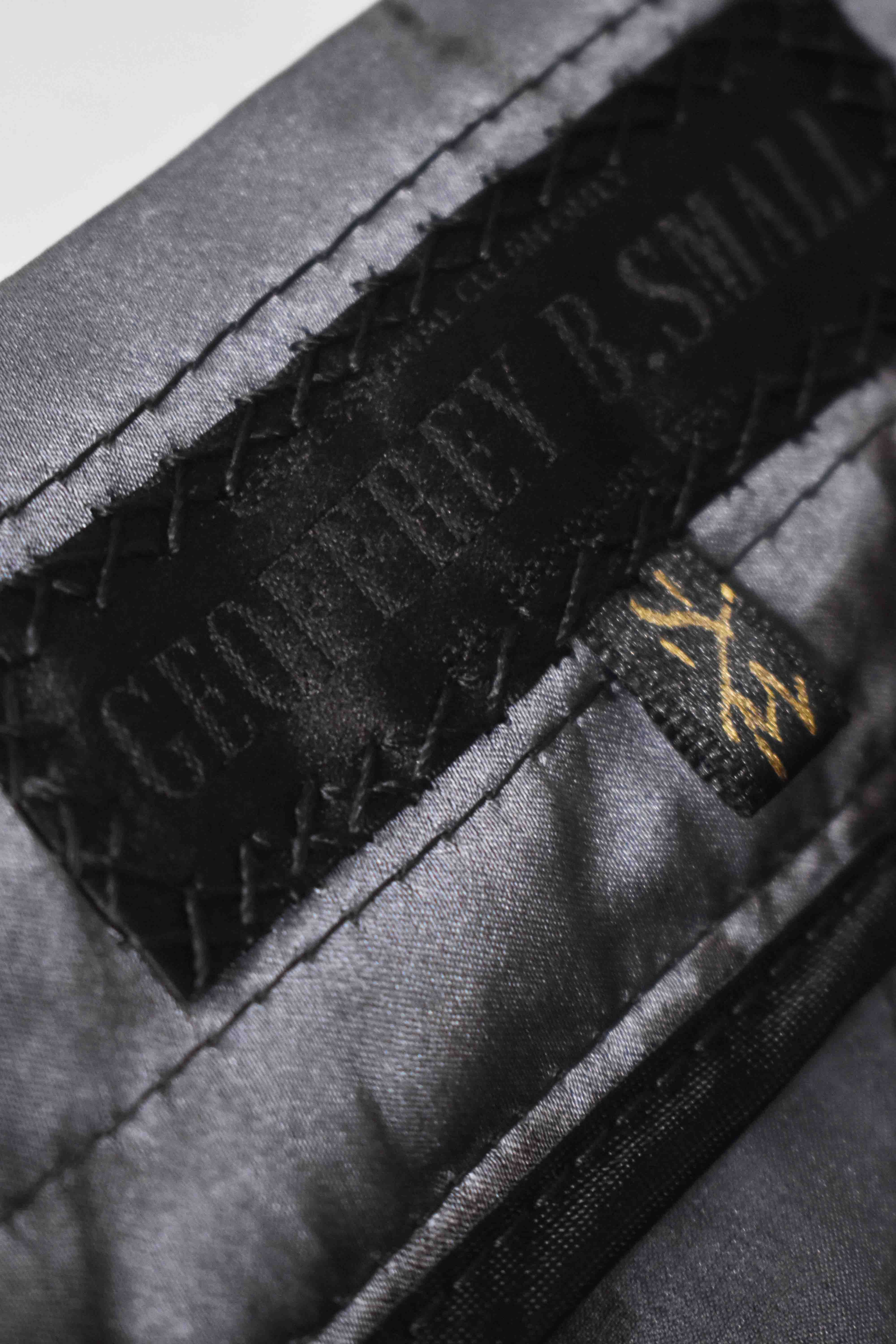 ...and our world leading pure silk hand dyed label created exclusively for us by Mion SpA in Torreglia which is the first label in the luxury industry to completely eliminate plastic polyester yarns in it—beautifully attached all by hand using pure silk threads...