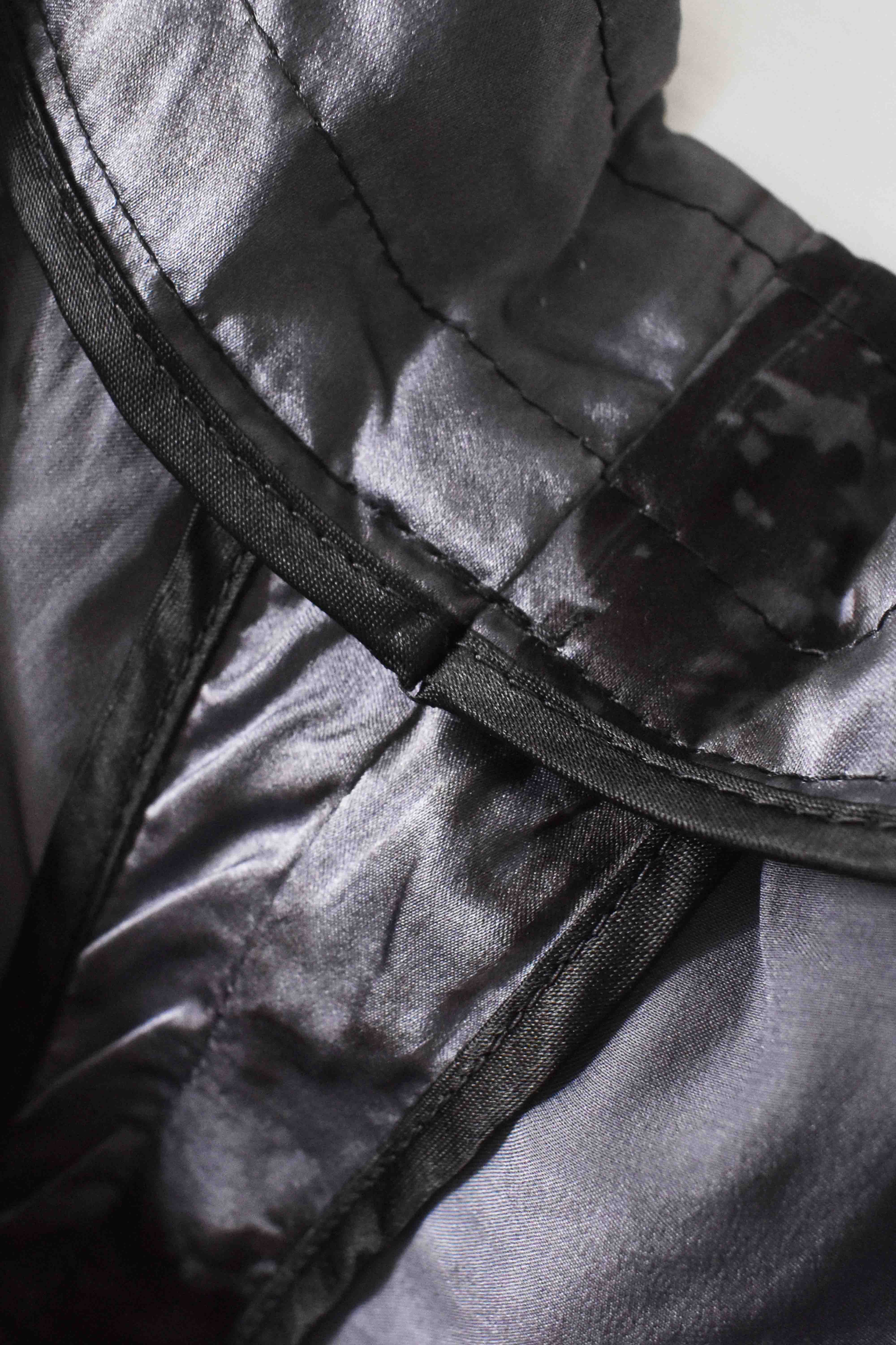 The design features features beautifully finished interior taped seam finishing, real hand sewn taped hemlines (not machined), generous 2,5 centimeter seam allowances on major fitting seams that allow the trouser to be altered and let out a full size larger than its original cut...