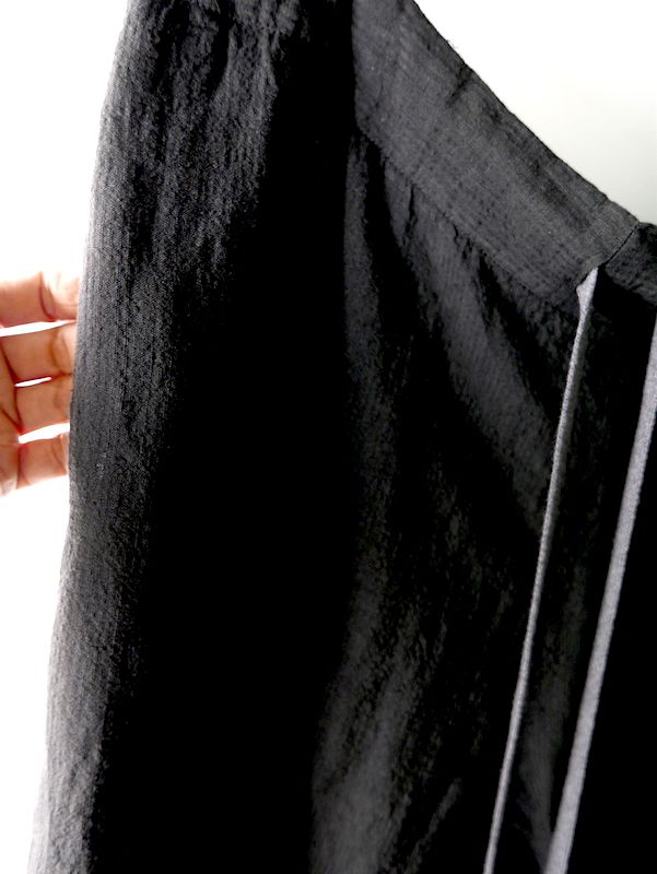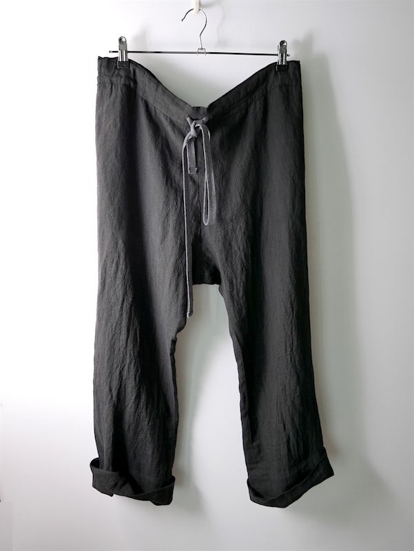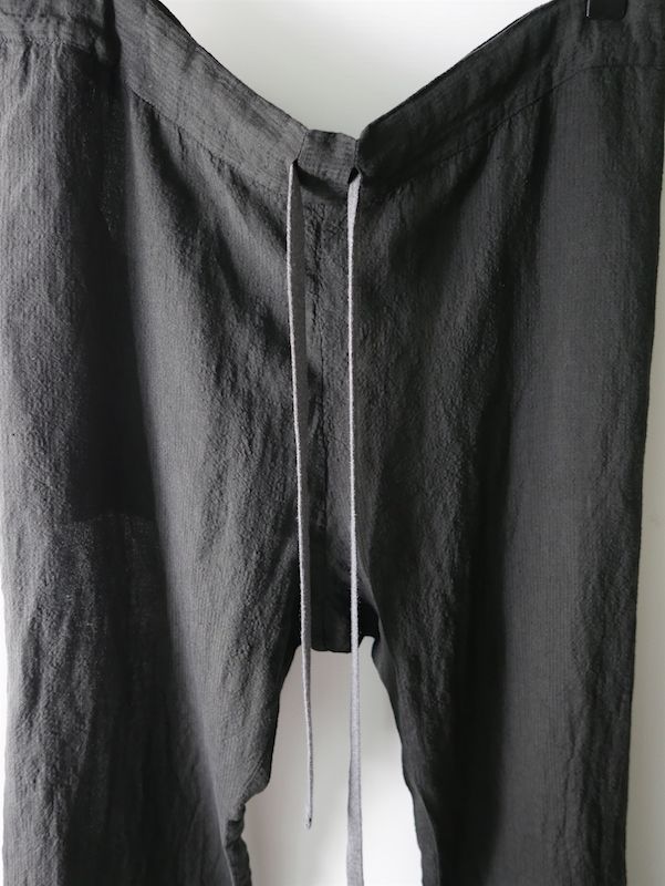 ... the drawstring is made of superb real pure wool jersey knit made for us by the venerable Nastrificio Victor SpA in Piove di Sacco, Padova with no plastics or synthetics providing its owner with just the right about of comfort stretch good feeling breathability and environmental sustainability--matched by a beautifully clean-tailored waistband construction and a stunning impeccably finished interior with all Italian satin taped seam finishing throughout...