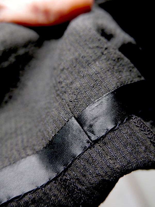 ...and real completely hand sewn (not machined) Italian satin taped hems using our own special techniques that are performed to be invisible on the outside yet hold solid for years and not come down that require over an hour of expert handwork to perform along with generous 2,5 centimeter seam allowances on major fitting seams that allow the trouser to be altered and let out for long-term wear and service. The trouser leg hems inside are also very generous so that the legs can be rolled up or cuffed easily with no seams being visible...
