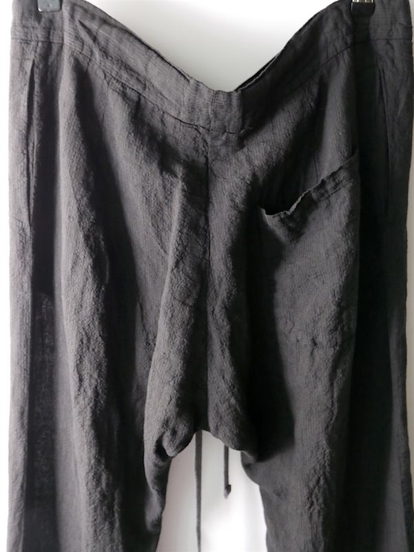 The design features expert all single-needle tailoring throughout with impeccable hand cut clean-tailored minimalist in-the-seam front pockets fully self-lined in the expensive silk & linen fabric for maximum comfort when you put your hands in, and durability; along with a very cool rear back curved patch pocket design from our extensive workwear tailoring research all configured to provide maximum lightness and breathability for the trosuer to wear in extreme hot and humid climate conditions...