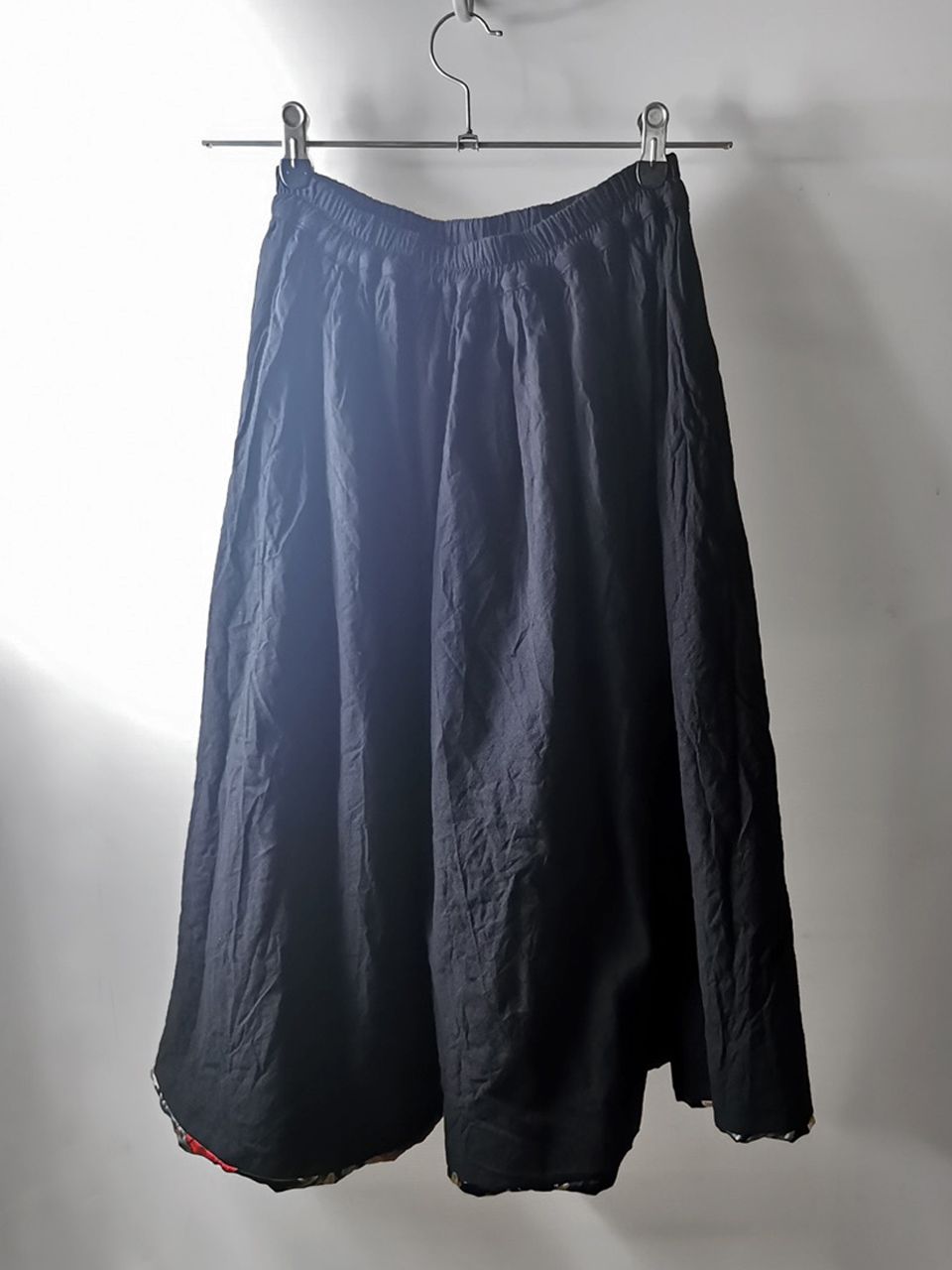 THIS super limited edition Evolution II CVWG03 handmade skirt design is one of only 2 pieces of its kind made by hand in the entire world this year. It was created from our modified late 19th century women’s baseball uniform skirt pattern, from our extensive tailoring research, and cut using Luigi Parisotto’s remarkable ”Amish” trans-seasonal cotton & wool with beautiful reversible lining story in pure Como raso exclusive floral print satin from the world’s leading silk production region that was specially hand dyed in our workrooms, that can be worn inside out for true 2-in-1 convertible design value- then individually hand washed in our studios for extra aging and softness. The design features a special Italian soft and light weight gathered elastic waistband for maximum comfort and elegance, and our world leading pure silk hand dyed label created exclusively for us by Mion SpA in Torreglia which is the first label in the luxury industry to completely eliminate plastic polyester yarns in it—beautifully attached entirely by hand using pure silk threads.