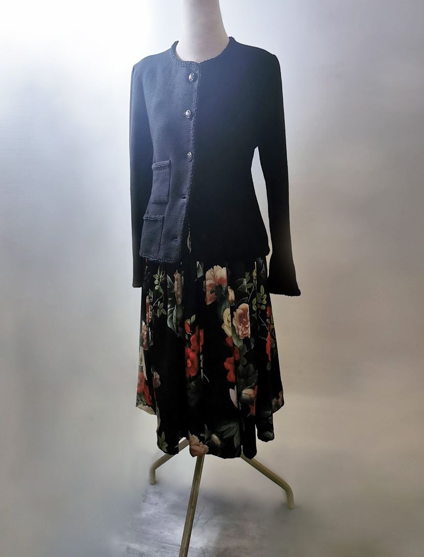 HAND DYED LUXURY COMO SILK SATIN RASO FLORAL PRINT & LUIGI PARISOTTO “AMISH” COTTON AND WOOL SUITING