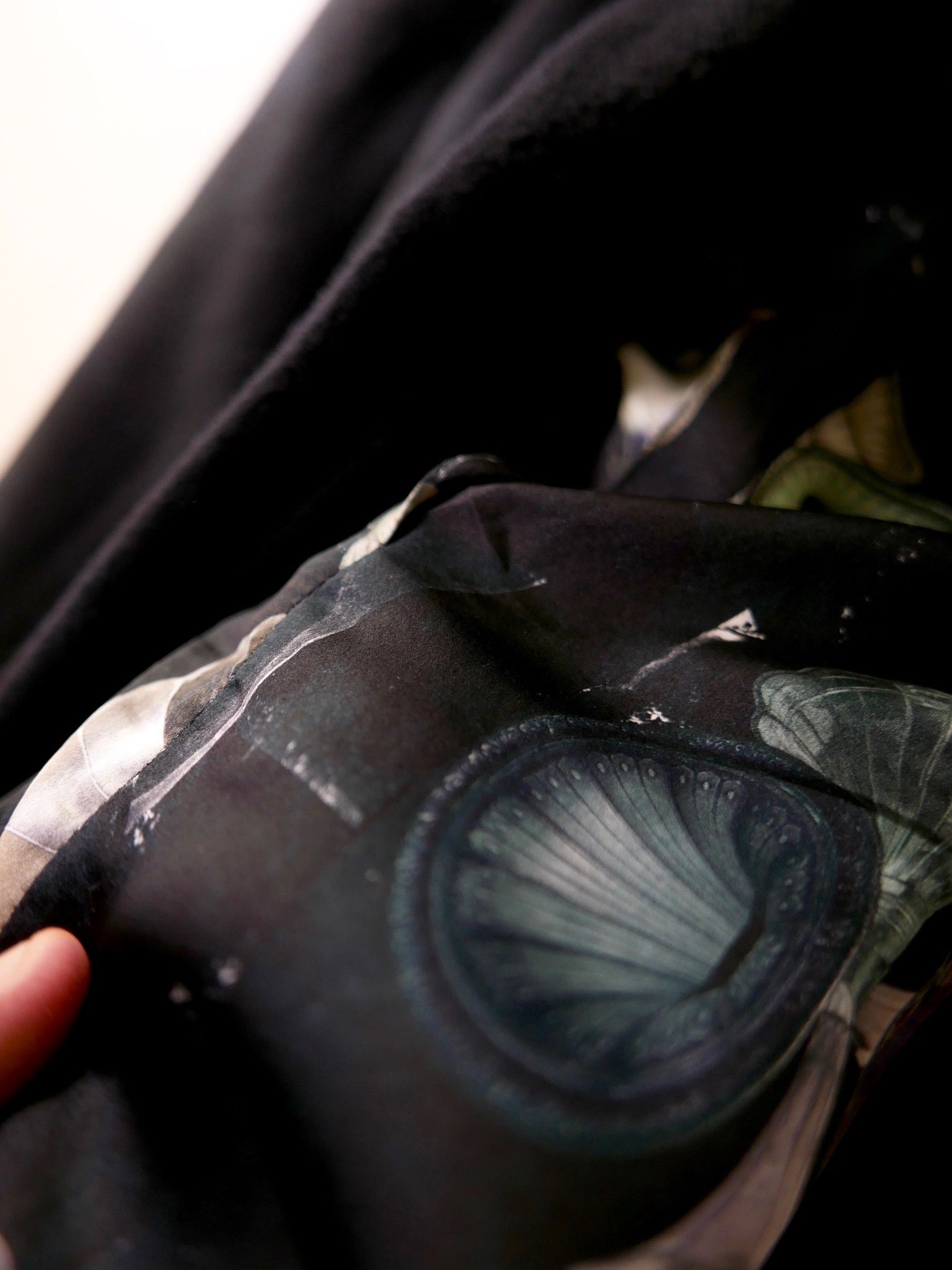 ...and an impeccably finished interior with handsewn hems and closures and a fully-lined luxury lining story in an exclusive pure 16-momme silk raso Darkland’s gramophone “evolution of sound” print lining created only for us by the legendary Brenna family in Como, the world’s leading silk production region, then specially hand dyed, washed and treated in our workrooms at Cavarzere Venezia using an intricate series of processes which required over 12 hours of painstaking expert work to achieve its beautiful colors, chiaroscuro patina effects, shaping and softness...