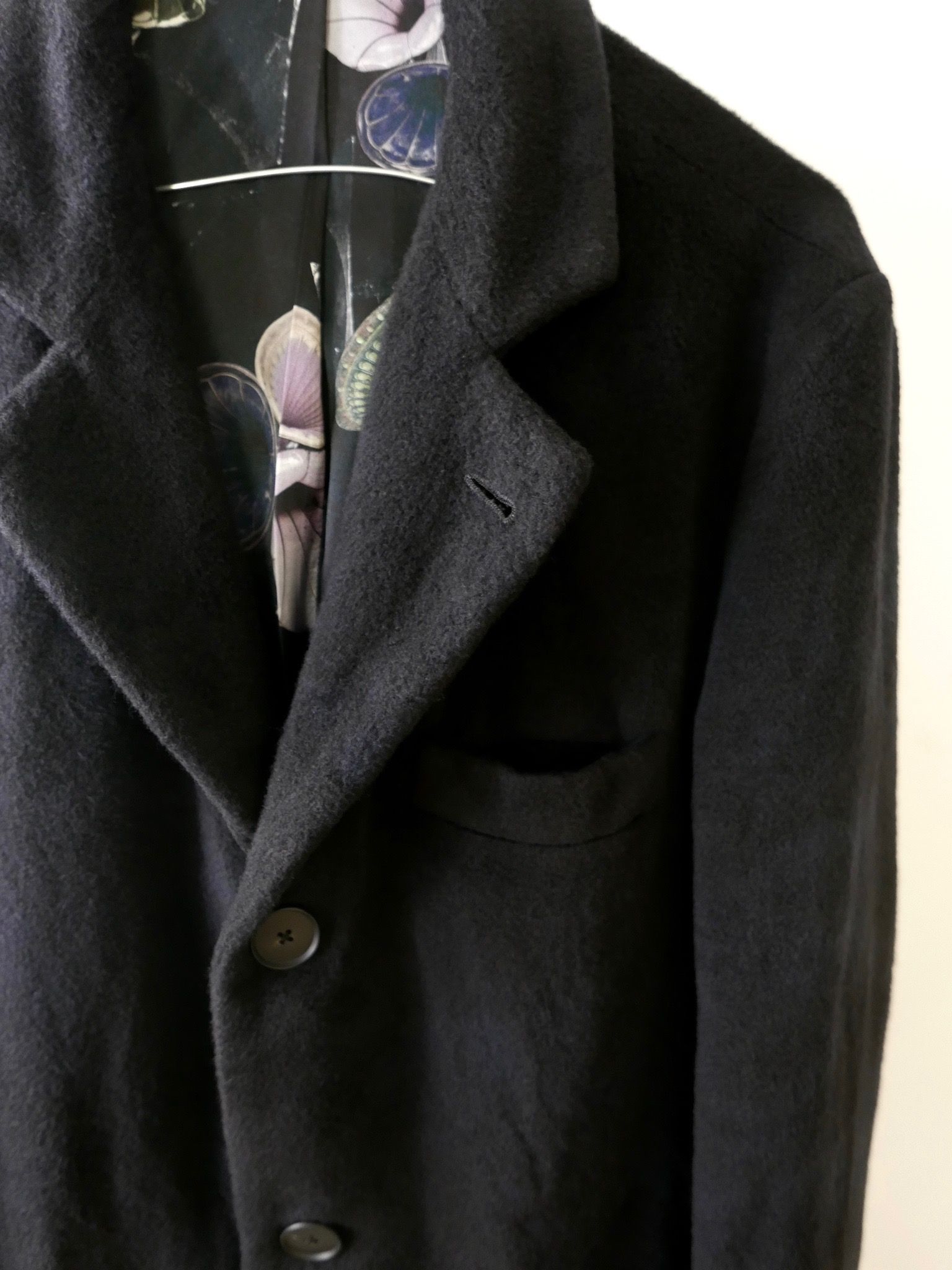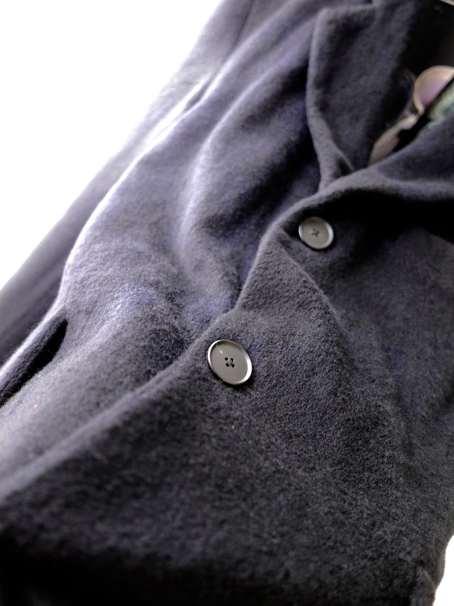 The special version of the super limited edition ETC01 was created exclusively using our original single-breasted 3-button notched-lapel classic car coat length pattern, from our extensive tailoring research, and cut using a superlux, supersoft 540 gram 3-ply Alashan pure cashmere coating cloth woven in Pollone Biella, Italy, by the oldest woolen mill and most respected cashmere makers in the world, Fratelli Piacenza 1733 Spa...