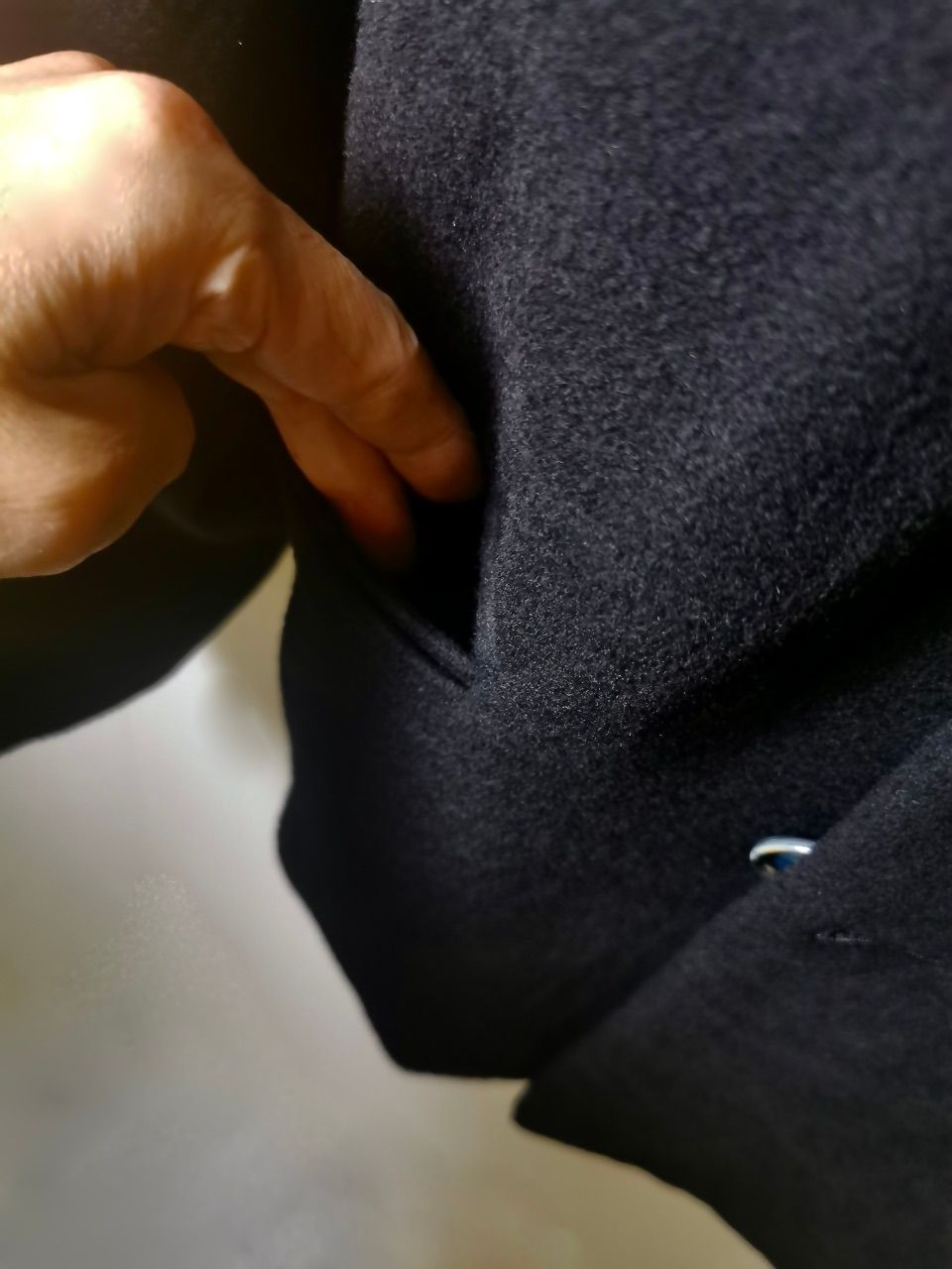 ...impeccable handcut welt and besom pockets inside and out--each fully self-lined with the extremely valuable vicunya and cashmere "Cocoon" cloth to provide extreme soft comfort when you put your hands in them (an approacth which requrires significantly more fabric expense when cutting the jacket), beautifully clean-finished handcut rear side vents and fully-lined interior construction, real hand sewn hemlines and finishing details (not machined), generous 2,5 centimeter seam allowances on major fitting seams that allow the garment to be altered and let out up to a full size larger than its original cut...