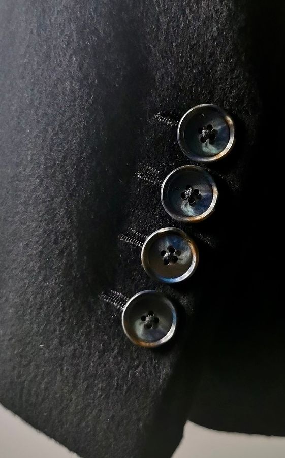 ..with spectacular 4-button real handmade working buttonhole surgeon's sleeve cuffs, one of the marks of a true handbuilt jacket that allows its owner to unbutton the cuff and roll it up in a variety of both stylistic and functional manners for work, comfort or play...