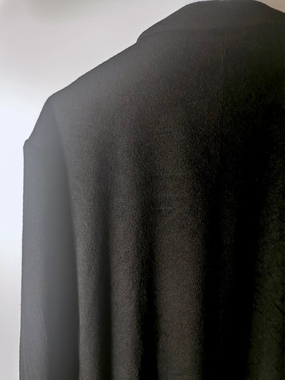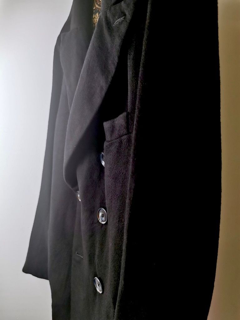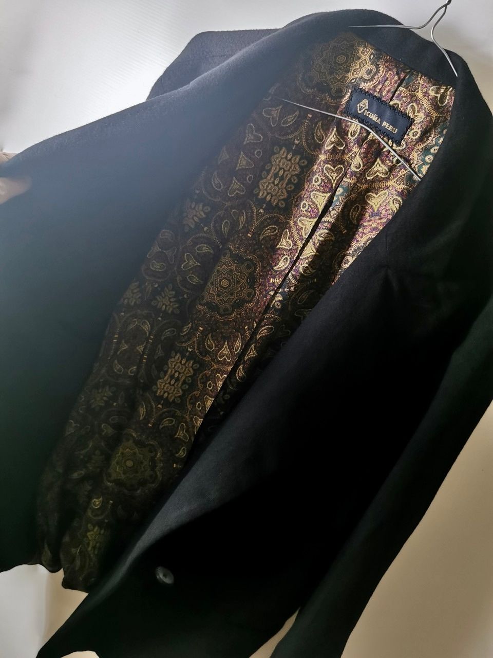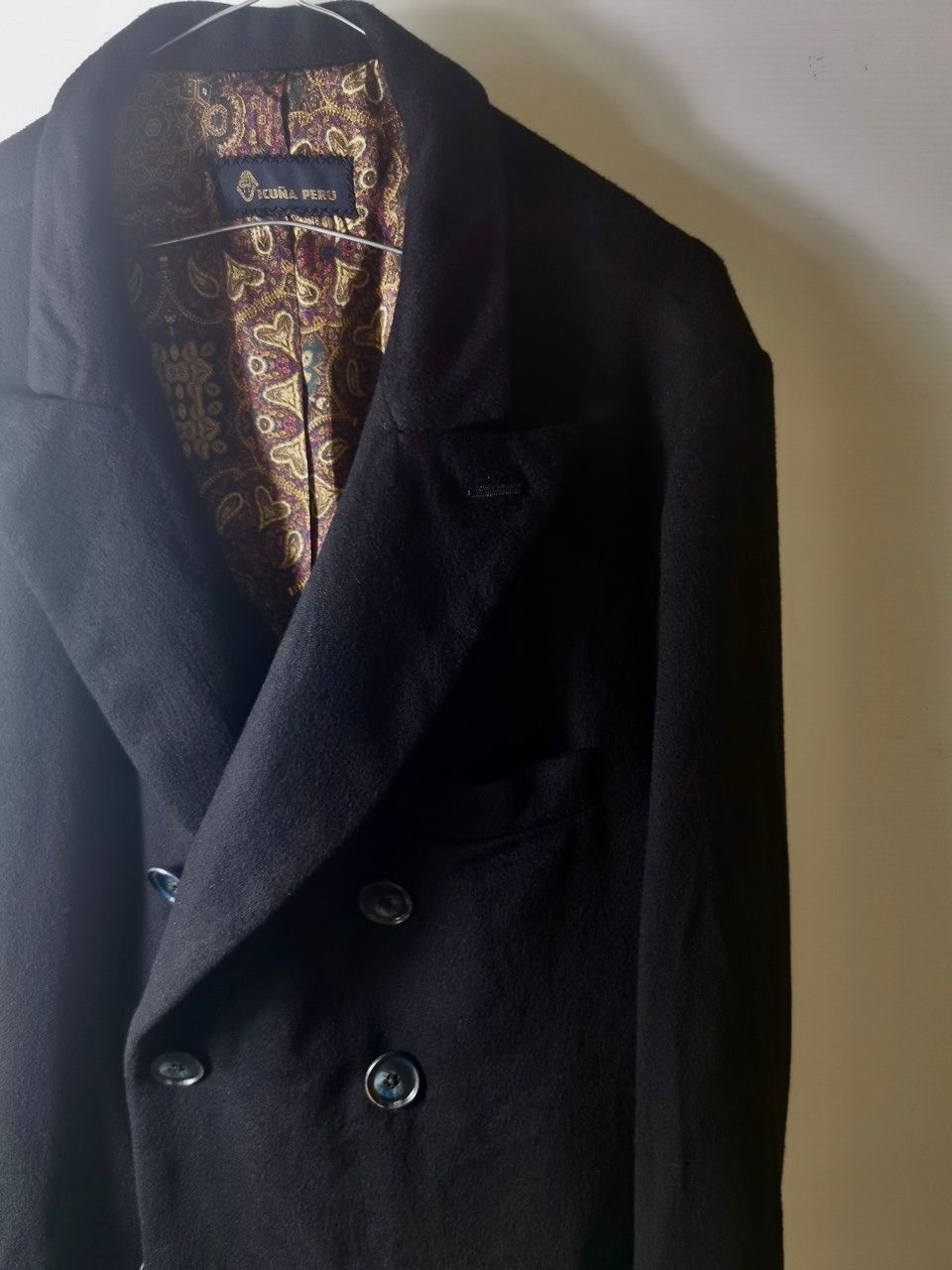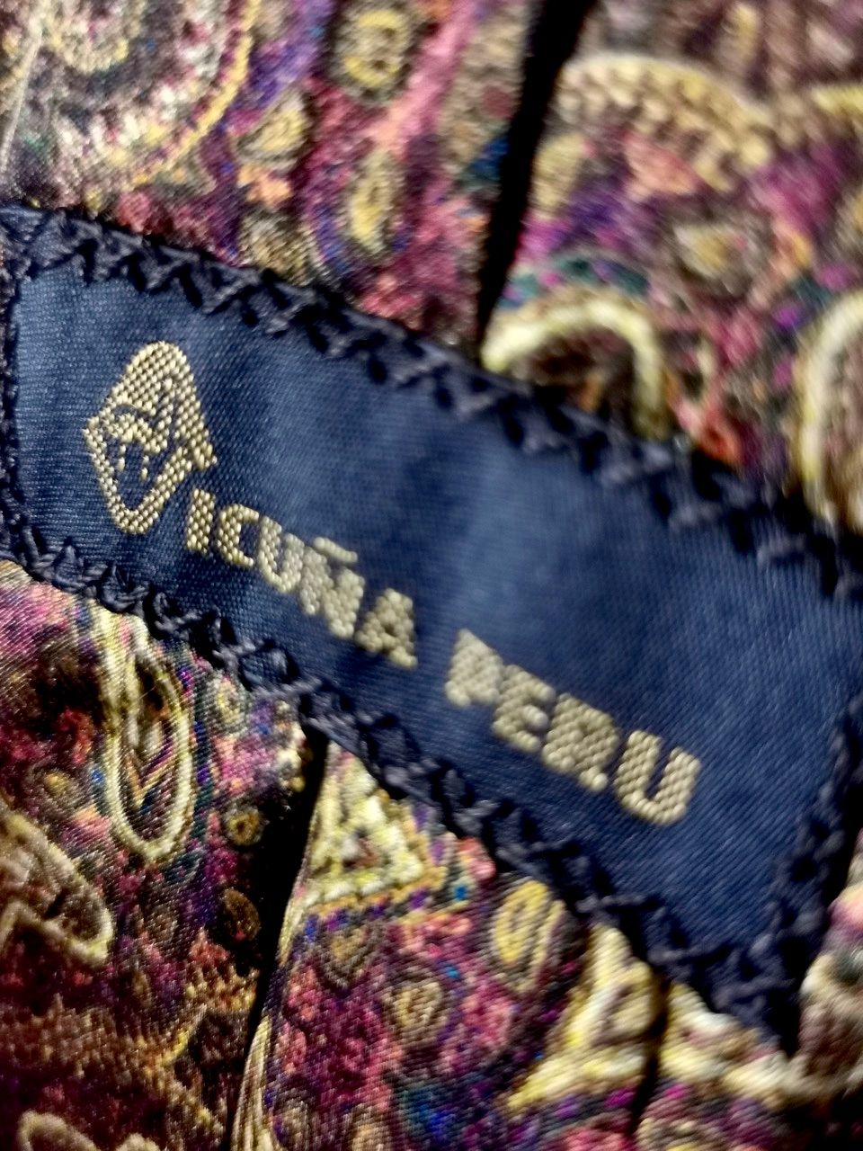 ...the special pure Peruvian Vicunya label issued exclusively for the piece by the Government of Peru is attached entirely by hand in the top center back of the coat's lining interior, clearly visible for custom's agents and physical proof of the article's fully-compliant CITES certifified fabric fibres and materials and critical to ensure its owner of its legitimate economic financial value and its sustainable, humane and ethical sourcing...