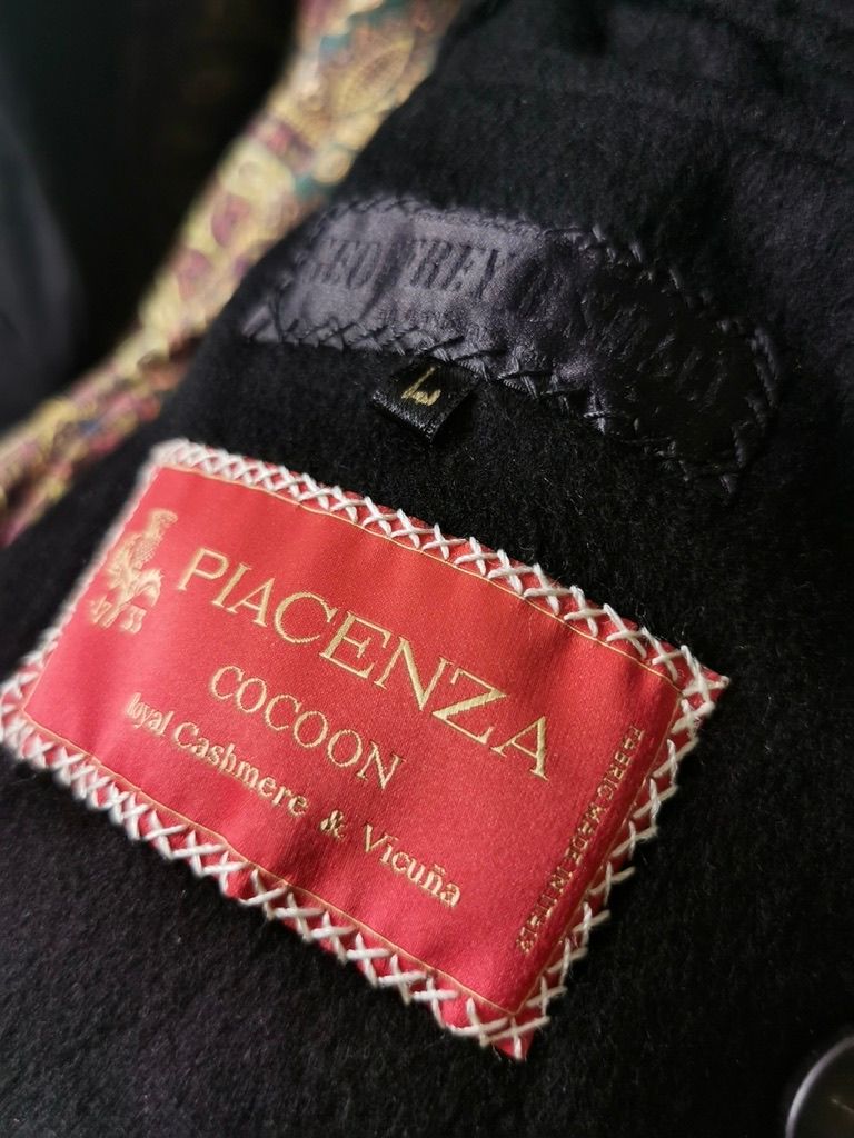 AUTHENTIC HANDPADSTITCHED CANVAS FRONT CONSTRUCTION WITH HAND DYED FRATELLI PIACENZA 1733 HYPERLUX “COCOON” BABY CASHMERE & VICUNYA FABRIC, PURE COMO SILK LININGS,SILK HANDSTITCH BUTTONHOLES & FONTANA “ALESSANDRO” DESIGN ADVANCED REAL HORN TINTED BUTTONS