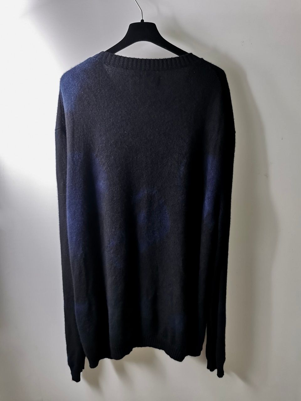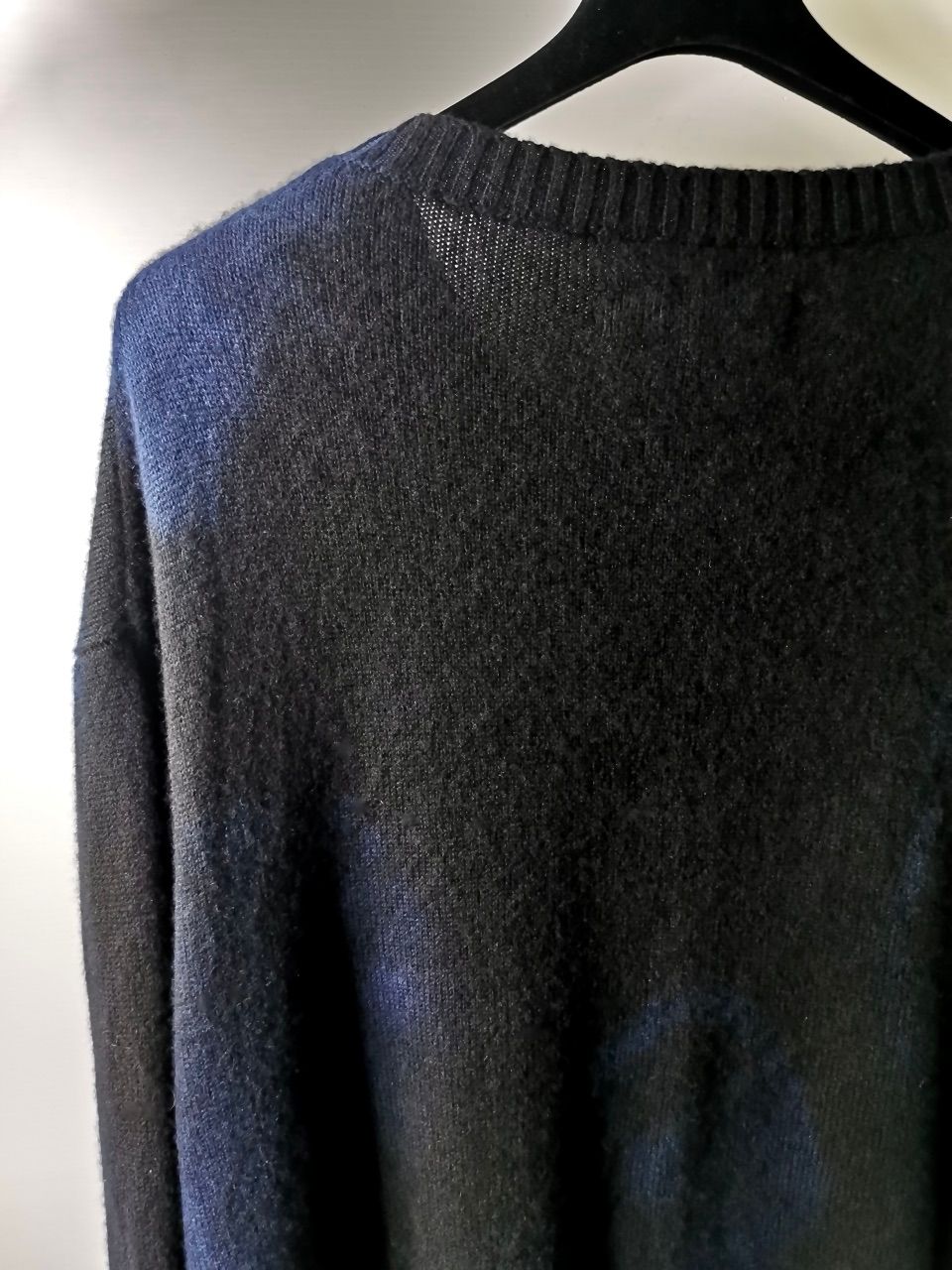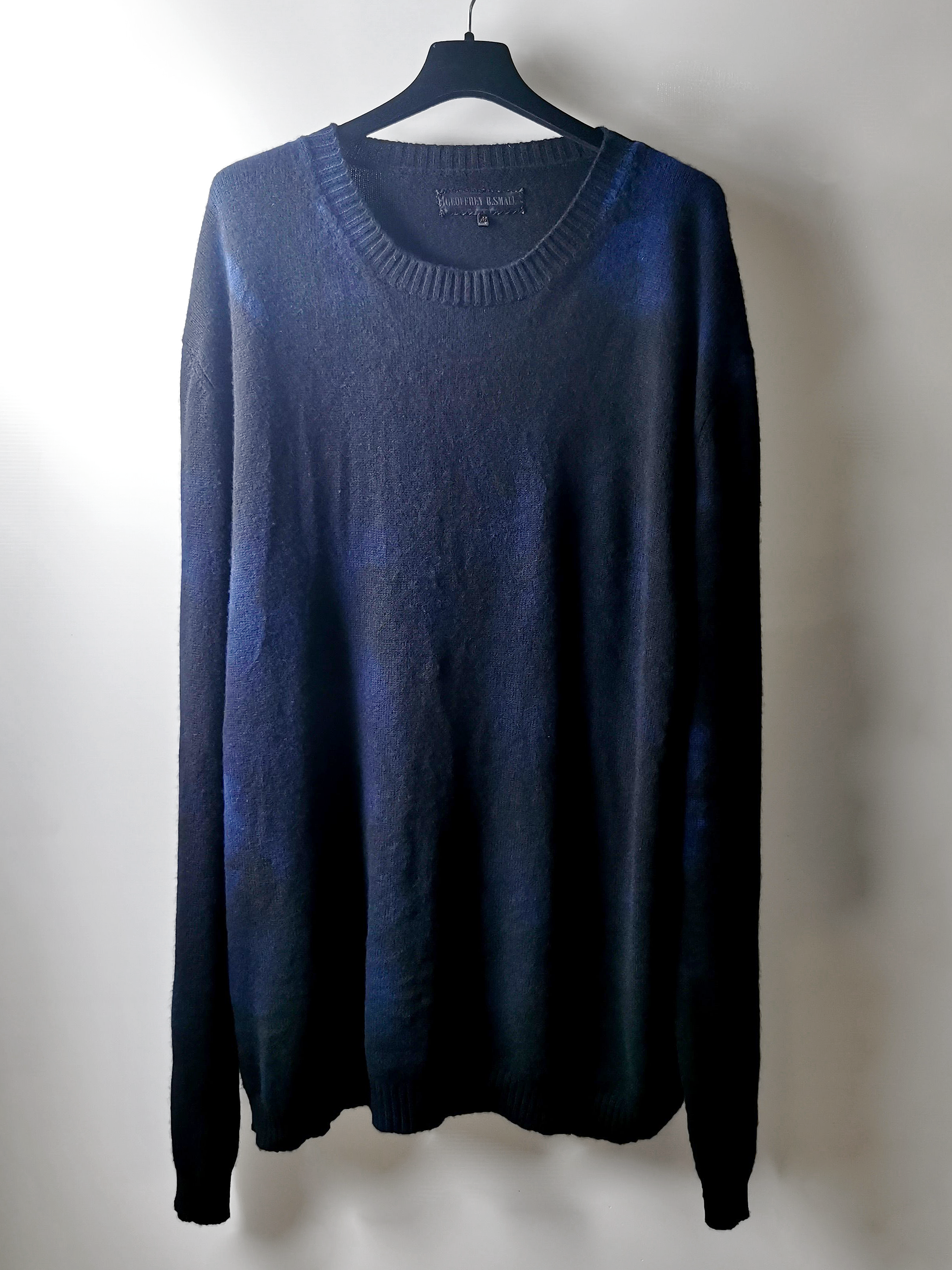 ...The special knitwear design was then specially individually multple hand dyed in our famous workrooms using our proprietary extreme handwork artistic artisan process and technique code-named “accident dye” and then extreme hand fabric treatment work which took over 5 days of expert work to achieve its spectacular unique mottled colors, aged patina effects, special shaping and incredible softness...