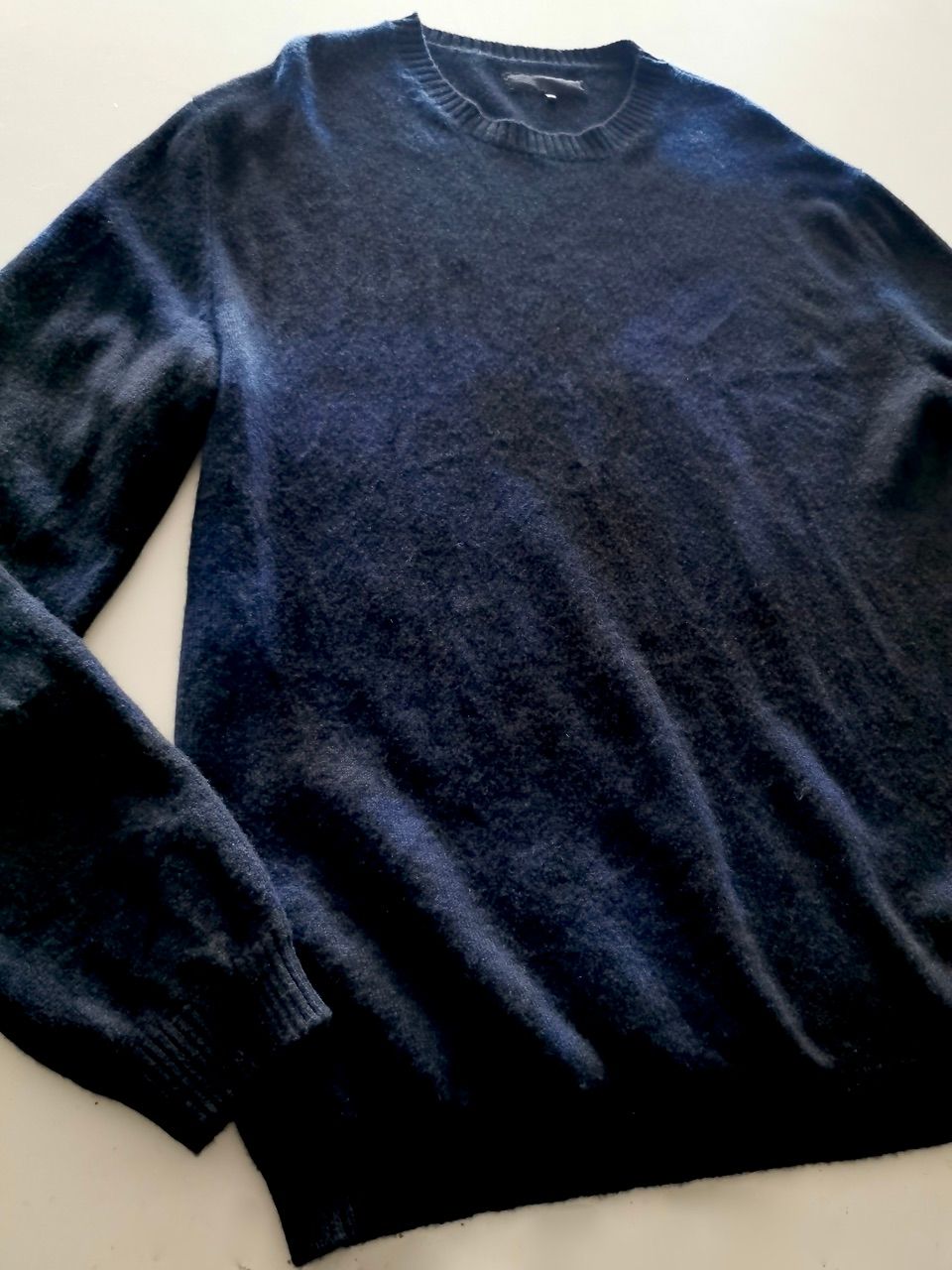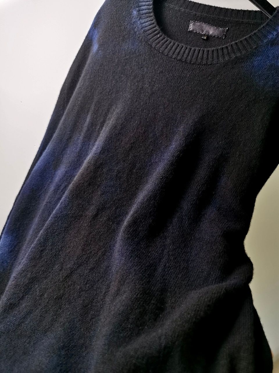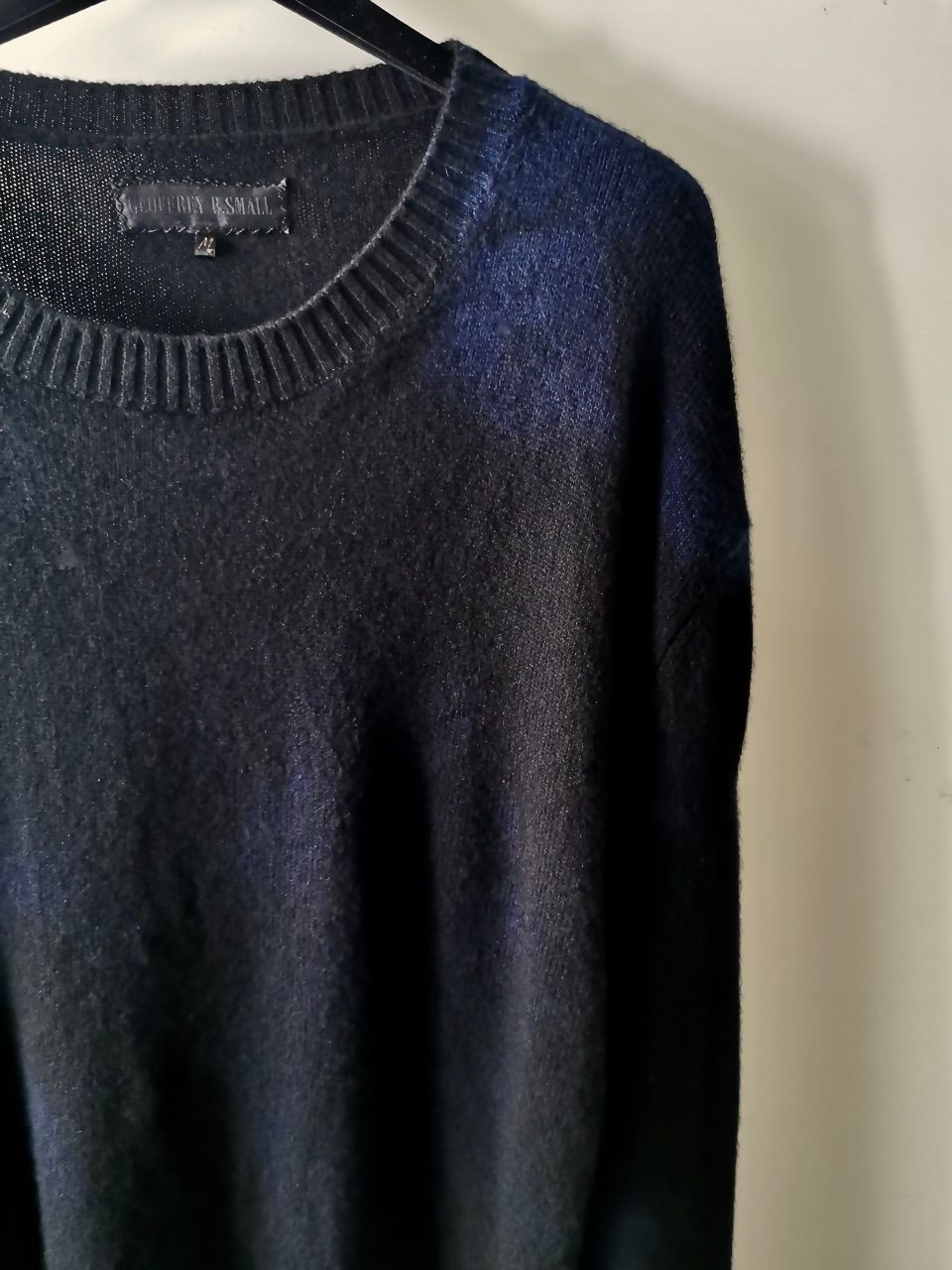 ...The special knitwear design was then specially individually multple hand dyed in our famous workrooms using our proprietary extreme handwork artistic artisan process and technique code-named “accident dye” and then extreme hand fabric treatment work which took over 5 days of expert work to achieve its spectacular unique mottled colors, aged patina effects, special shaping and incredible softness...