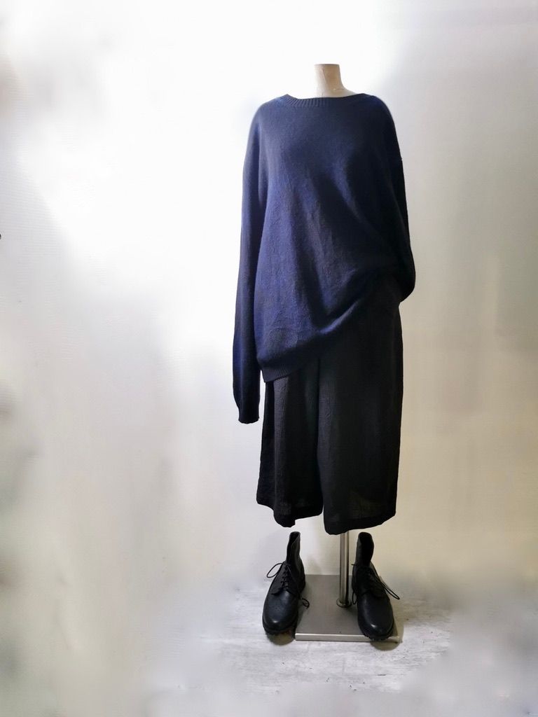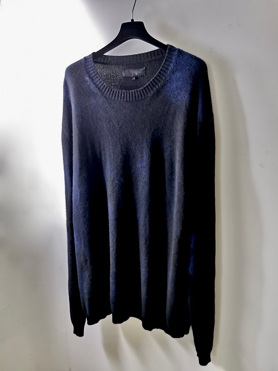 This EV6K03 extreme artisanal production design sweater is one of only 7 pieces of its kind currently made in the world from our classic oversize relaxed fit crew-neck 7 gauge pullover sweater pattern from our extensive tailoring research...