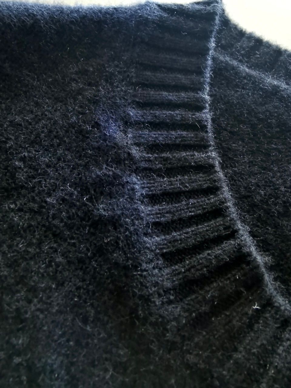 ..and the special “calatura” 4 into 2 shoulder seam and armhole shaping recognized by connoisseurs of the very best knitwear work...