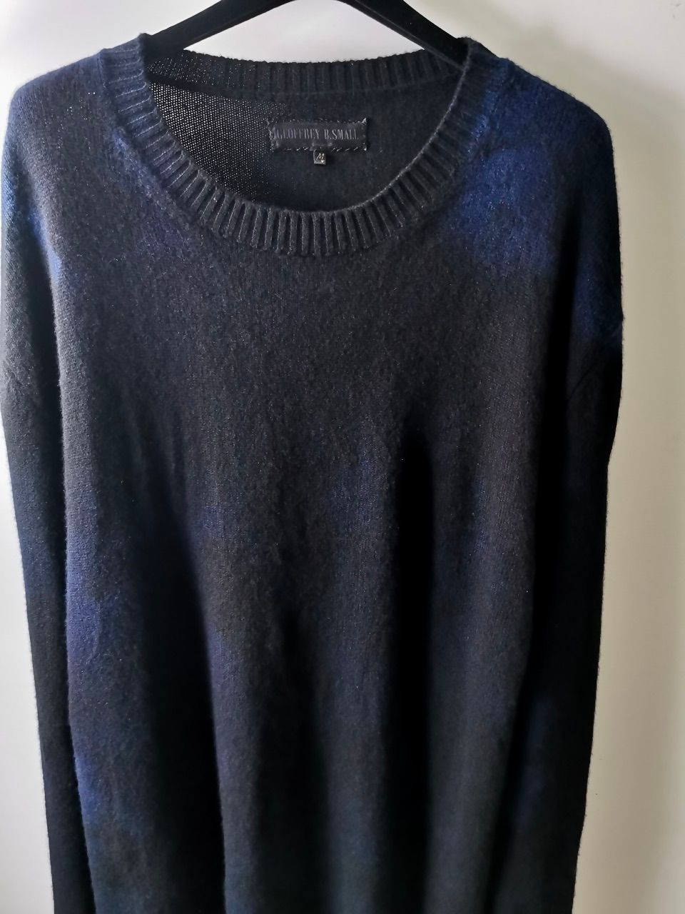 THIS GBS Evolution VI super limited edition EV6K03 extreme artisanal production design sweater is one of only 7 pieces of its kind currently made in the world from our classic oversize relaxed fit crew-neck 7 gauge pullover sweater pattern from our extensive tailoring research, and expertly knit using classic fully fashioned construction techniques by the Sella family of master knitters in Cavarzere Venezia and over 460 grams of pure Mongolian cashmere ultralux yarn from Italy’s most prestigious cashmere yarn maker, the Cariaggi Lanificio in Cagli Pesaro e Urbino that provides 10 times more insulating power than normal wool. The special knitwear design was then specially individually multple hand dyed in our famous workrooms using our proprietary extreme handwork artistic artisan process and technique code-named “accident dye” and then extreme hand fabric treatment work which took over 5 days of expert work to achieve its spectacular unique mottled colors, aged patina effects, special shaping and incredible softness. The sweater will get even softer over time with natural use, unlike industrial sweater finishing- GBS hand finishing techniques use no chemicals, oils, silicone or machinery- allowing the sweater to have a longer wearing life and maximum environmental sustainability. The design features all the hallmarks of the very best in Italian knitwear craftsmanship from its impeccable seamless one piece build entirely made from scratch with no sewing seams or cutting to the exquisitely executed “costina” rib-knit sections, and “calatura” 4 into 2 shoulder seam and armhole shaping. The piece also features our world leading pure silk hand dyed label created exclusively for us by Mion SpA in Torreglia which is the first label in the luxury industry to completely eliminate plastic polyester yarns in it, beautifully sewn in by hand in luxurious pure silk Bozzolo Reale Milano Seta threads. Variations in color and color density are not imperfections or irregularities, but specific characteristics of the special hand dyeing and making techniques. We recommend professional cleaning only or hand wash in cold water. Do not wash with other items. Do not put in machine washer or dryer.