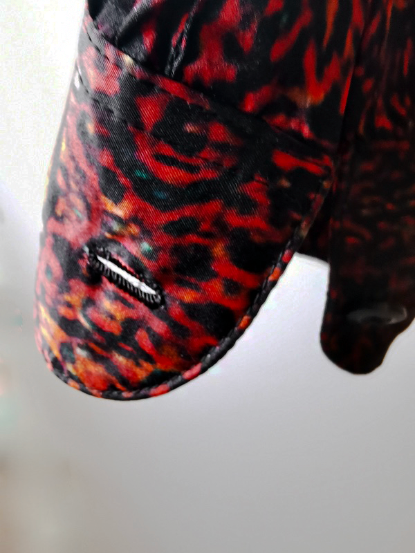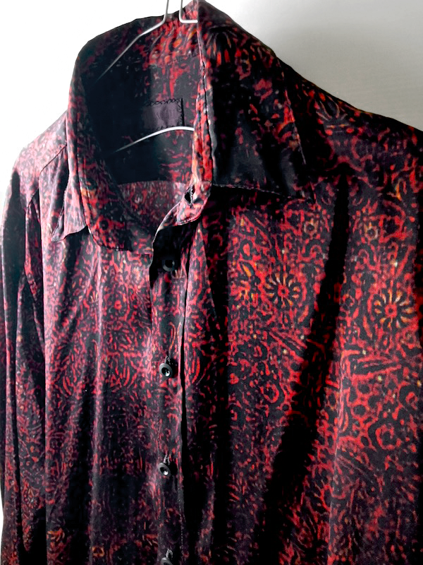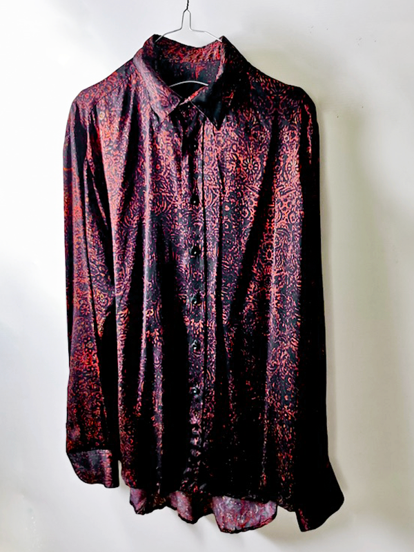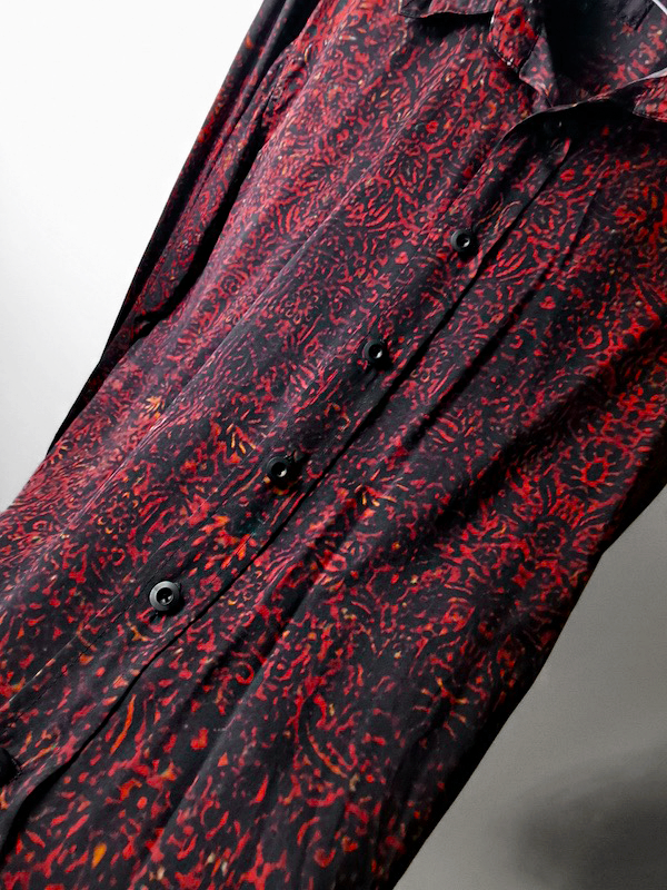 Created in a super limited series of just 4 examples in the world exclusively for Leclaireur Hérold in Paris, this amazing shirt is both a pure GBS collector's design piece and an extremely versatile superlux avant-garde wardrobe investment. Its dramatic print design, incredible materials, components, construction and advanced proportions provide superb comfort, ease of movement, and can be worn by men and women in a wide range of ways for travel, work and social occasions. Designed and built like no other silk shirt in the world... the GBS EV6S11 is a luxury wardrobe investment of long-term value.
