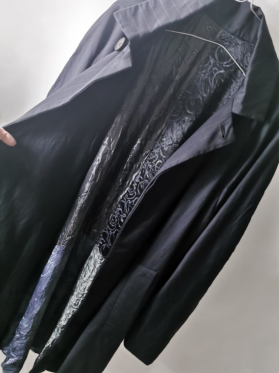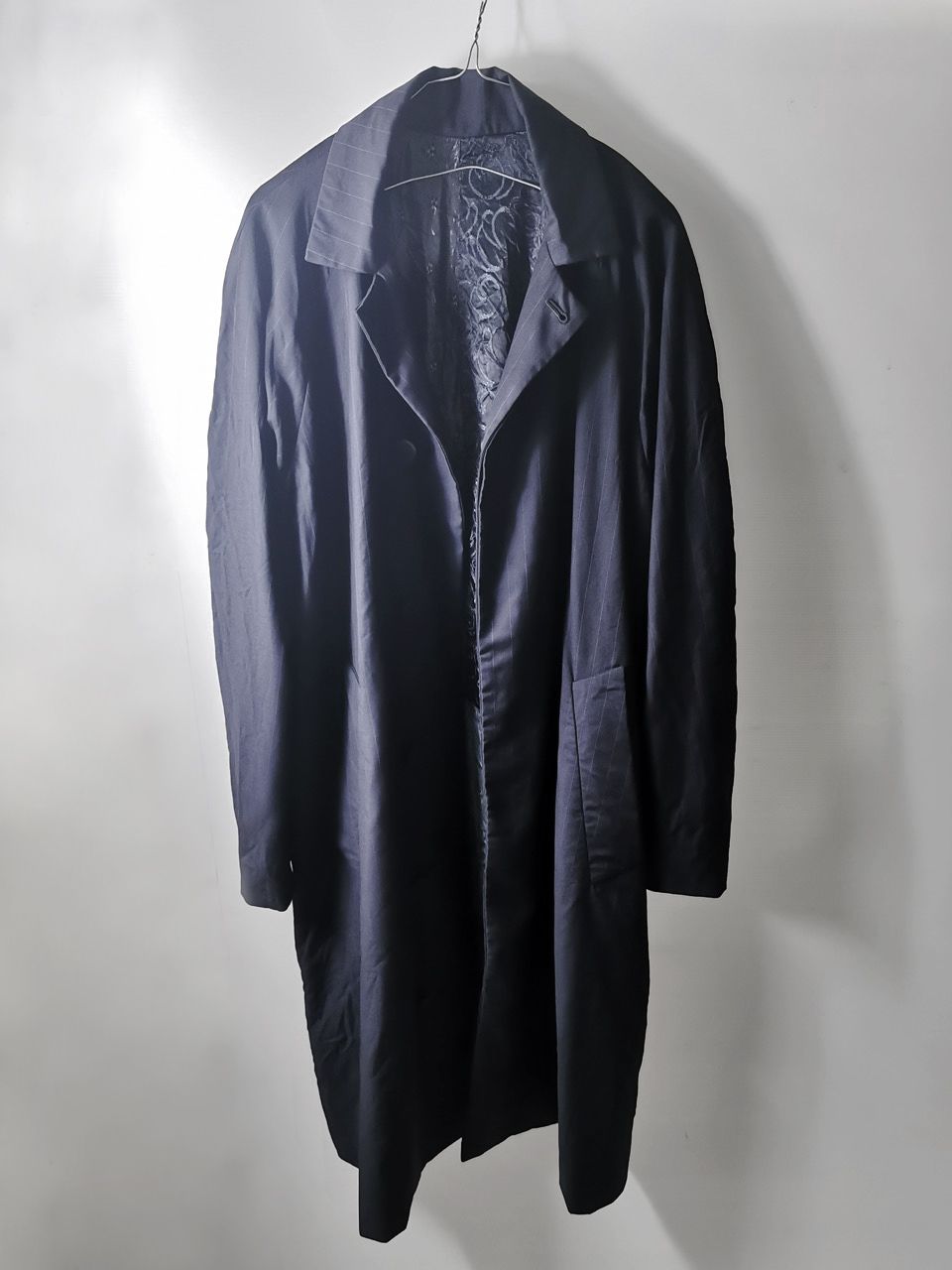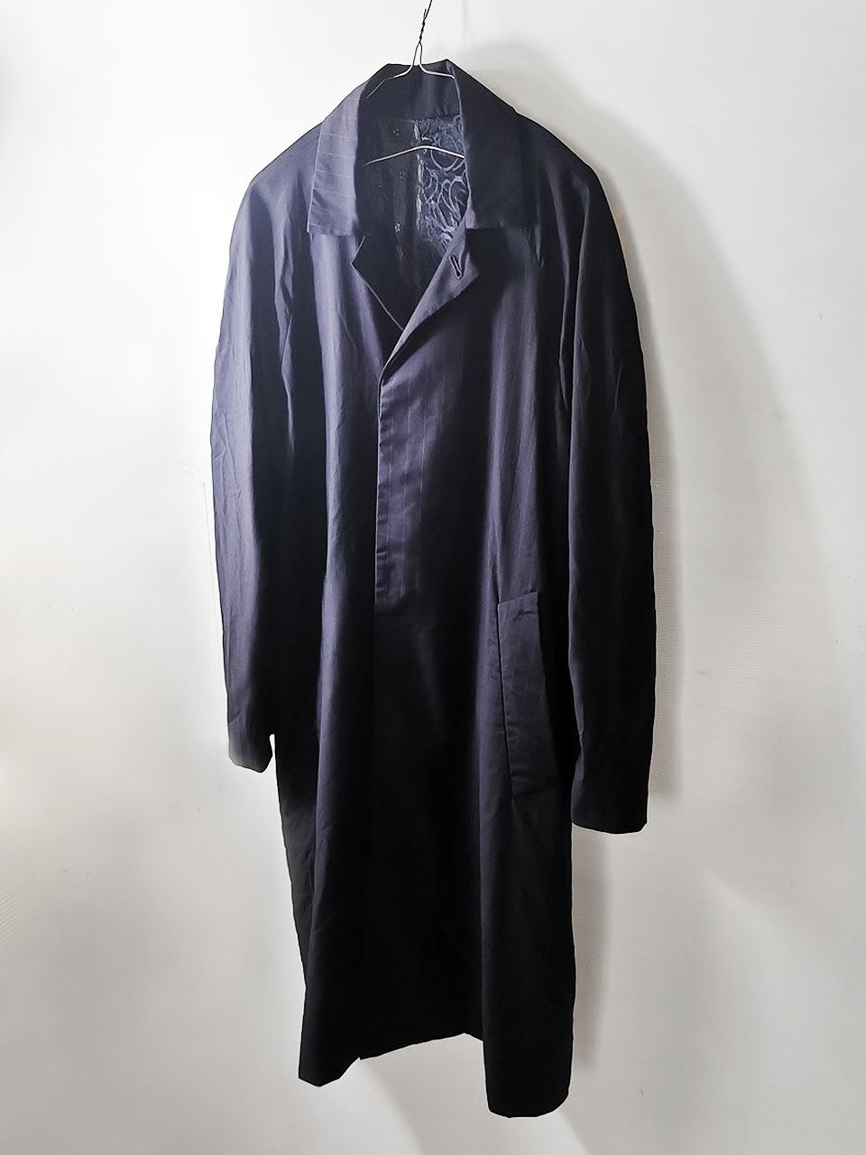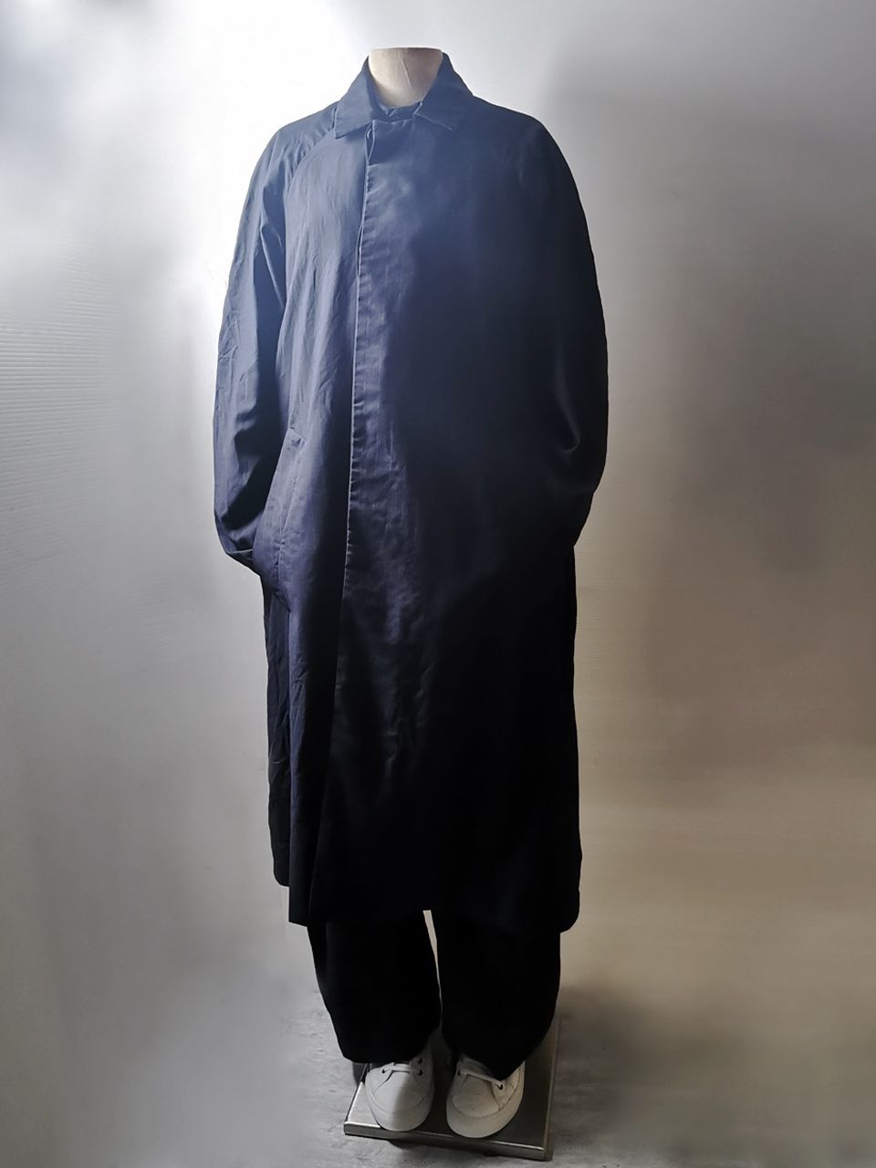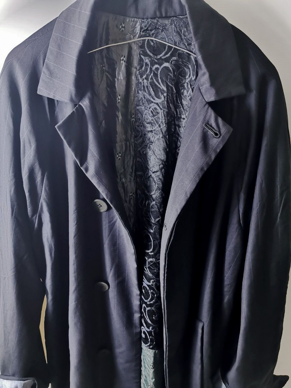 This special version of the super limited edition GBS Evolution VI.2 EV6WC01 handmade relaxed-fit balcaman coat design is one of only 2 pieces of its kind made by hand in the entire world. It was created from our modified early 1980’s Italian wide shoulder raglan sleeve medium-length fly-front coat pattern, from our extensive tailoring research, and cut using a Super 130's pure extrafine luxury wool striped suiting cloth woven in Biella, Italy--the world's leading region for fine virgin wool fabric--combined with an exquisite GBS hand accident dyed lining composition story of hand cut jacquard viscosa luxury lining and pure cupro sleeve lining fabrics woven by Ezio Ghiringhelli in Varese, and individually specially multiple hand accident dyed, washed and treated in our world-famous GBS Superworkrooms using a series of complex proprietary processes that required over 17 hours of expert work for the single piece to achieve its special lining colors, patina effects, shaping drape and softness. The design features expertly tailored invisible seamless fly-front construction with classic raglan sleeve styling, rounded button tab sleeve cuff details, specially reproduced hand cut and built pockets from the original design, beautifully all clean-finished fully-lined interior, generous 2,5 centimeter seam allowances on major fitting seams that allow the coat to be altered, remarkable real horn incision-cut design buttons made for us by the world's greatest living button-makers--Claudio and Cinzia Fontana in Parma--and no less than 8 of our signature real hand-stitched buttonholes (that required at least 10-14 minutes to create each one) in luxurious pure silk Bozzolo Reale Milano Seta thread. The piece also features our world leading pure silk natural hand dyed label created exclusively for us by Mion SpA in Torreglia which is the first label in the luxury industry to completely eliminate plastic polyester yarns in it--beautifully attached entirely by hand using pure silk threads.