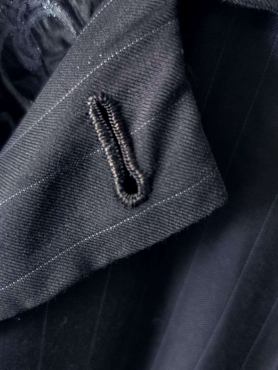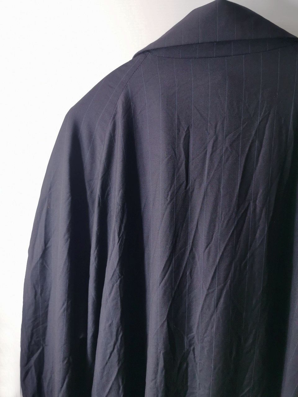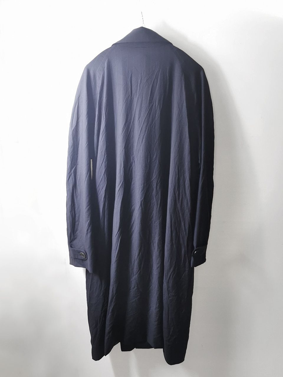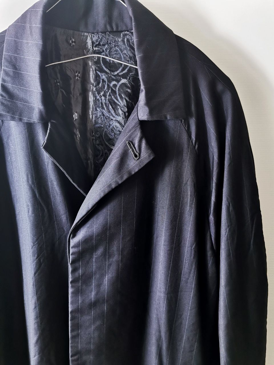 This special version of the super limited edition GBS Evolution VI.2 EV6WC01 handmade relaxed-fit balcaman coat design is one of only 2 pieces of its kind made by hand in the entire world. It was created from our modified early 1980’s Italian wide shoulder raglan sleeve medium-length fly-front coat pattern, from our extensive tailoring research, and cut using a Super 130's pure extrafine luxury wool striped suiting cloth woven in Biella, Italy--the world's leading region for fine virgin wool fabric...