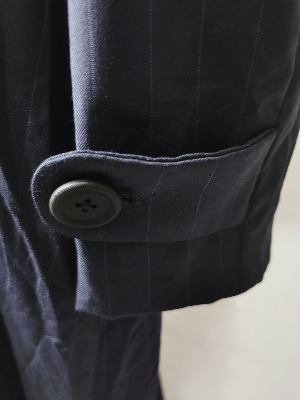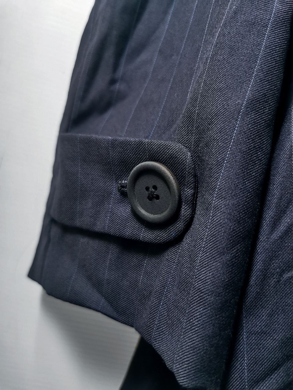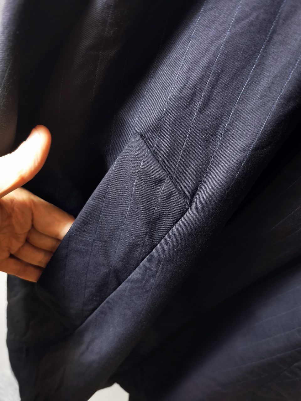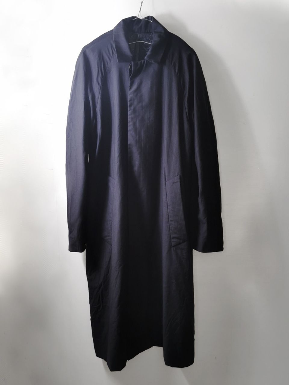 This special version of the super limited edition GBS Evolution VI.2 EV6WC01 handmade relaxed-fit balcaman coat design is one of only 2 pieces of its kind made by hand in the entire world. It was created from our modified early 1980’s Italian wide shoulder raglan sleeve medium-length fly-front coat pattern, from our extensive tailoring research, and cut using a Super 130's pure extrafine luxury wool striped suiting cloth woven in Biella, Italy--the world's leading region for fine virgin wool fabric...