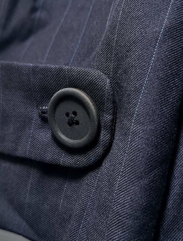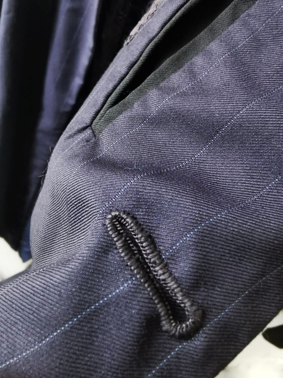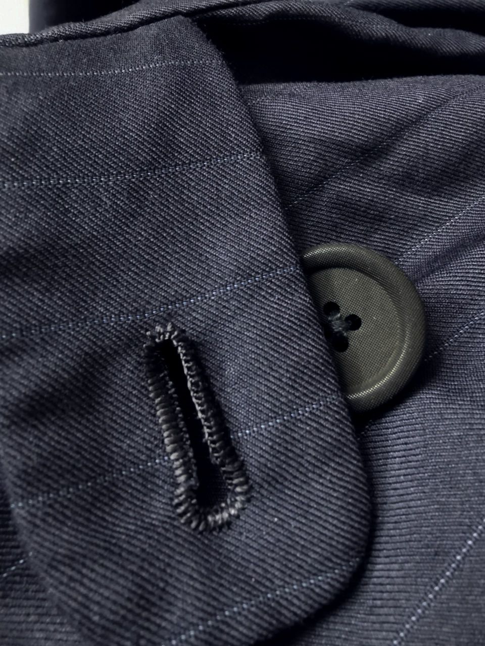 ...remarkable real horn incision-cut design buttons made for us by the world's greatest living button-makers--Claudio and Cinzia Fontana in Parma--and no less than 8 of our signature real hand-stitched buttonholes (that required at least 10-14 minutes to create each one) in luxurious pure silk Bozzolo Reale Milano Seta thread...