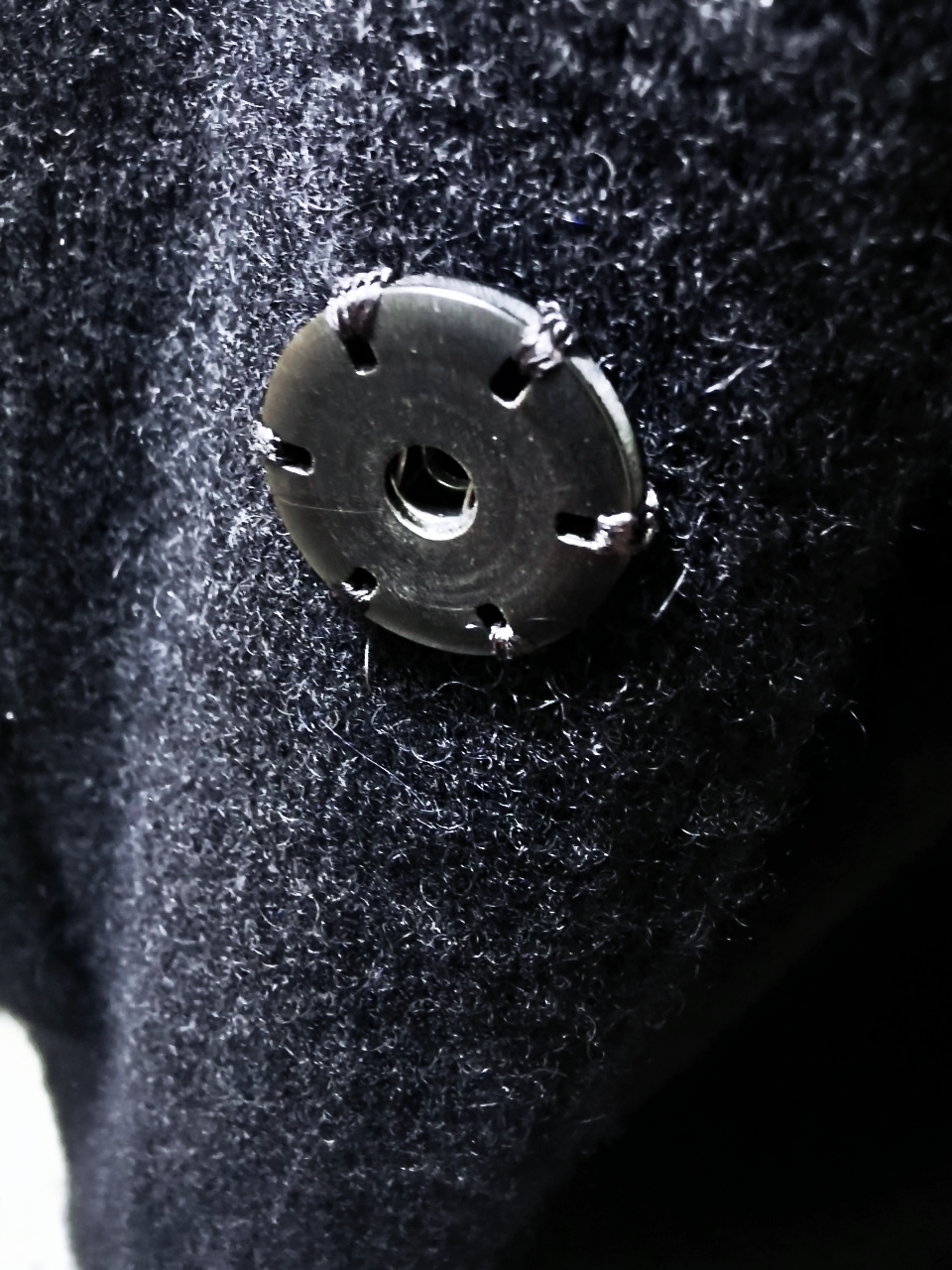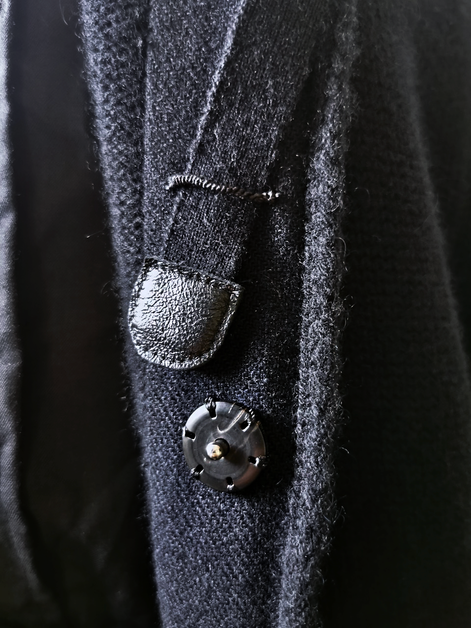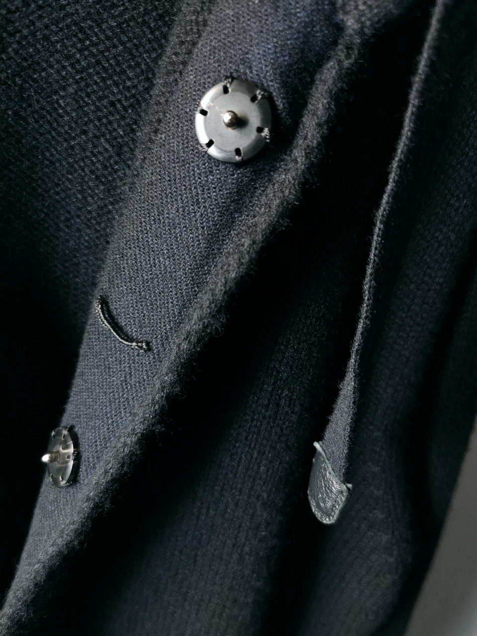 ...plus handsewn pure silk hood strap loops, and no less than 8 spectacular advanced real horn automatica pressure snap button designs made only for us by the world’s greatest living buttonmakers—Claudio and Cinzia Fontana in Parma, each handsewn in pure silk Bozzolo Reale Milano Seta threads (which required at least 17-22 minutes to attach each one, over 2 hours of expert work just on the button attachments alone for a single sweater)...