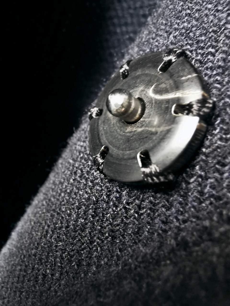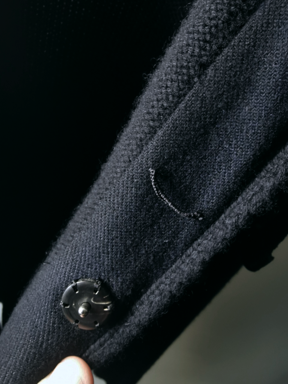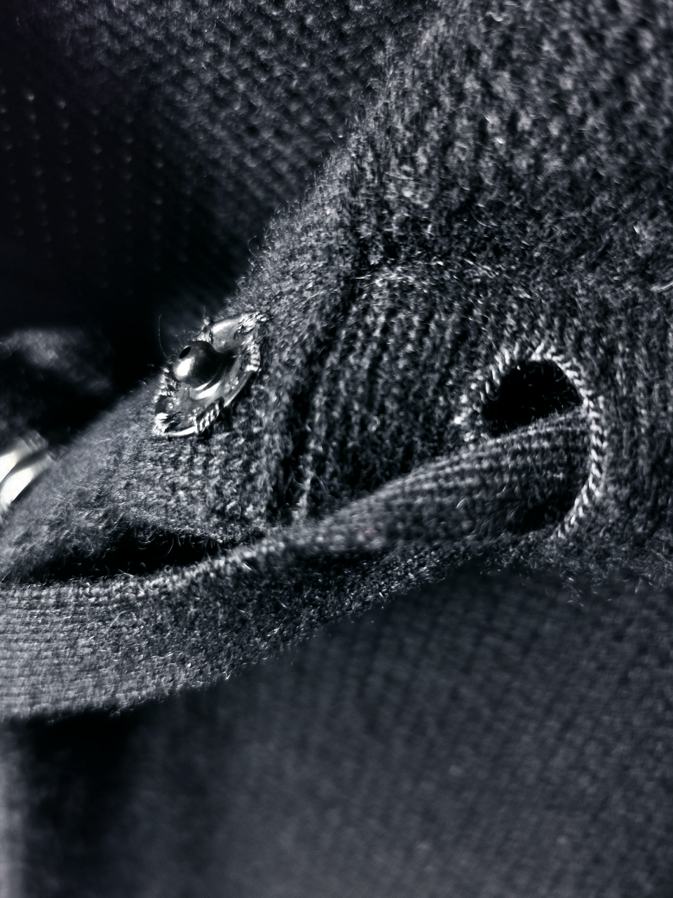 ...plus handsewn pure silk hood strap loops, and no less than 8 spectacular advanced real horn automatica pressure snap button designs made only for us by the world’s greatest living buttonmakers—Claudio and Cinzia Fontana in Parma, each handsewn in pure silk Bozzolo Reale Milano Seta threads (which required at least 17-22 minutes to attach each one, over 2 hours of expert work just on the button attachments alone for a single sweater)...