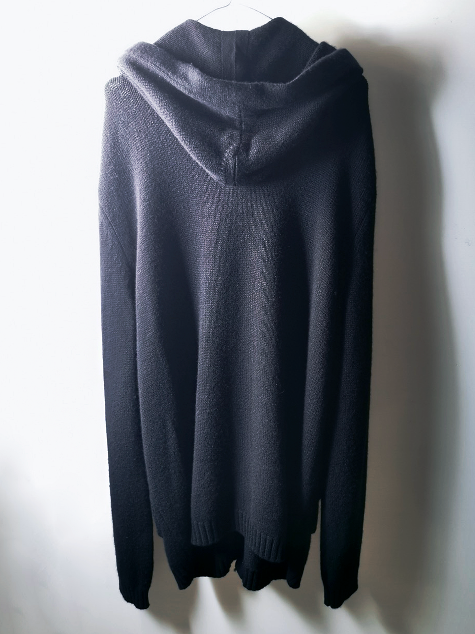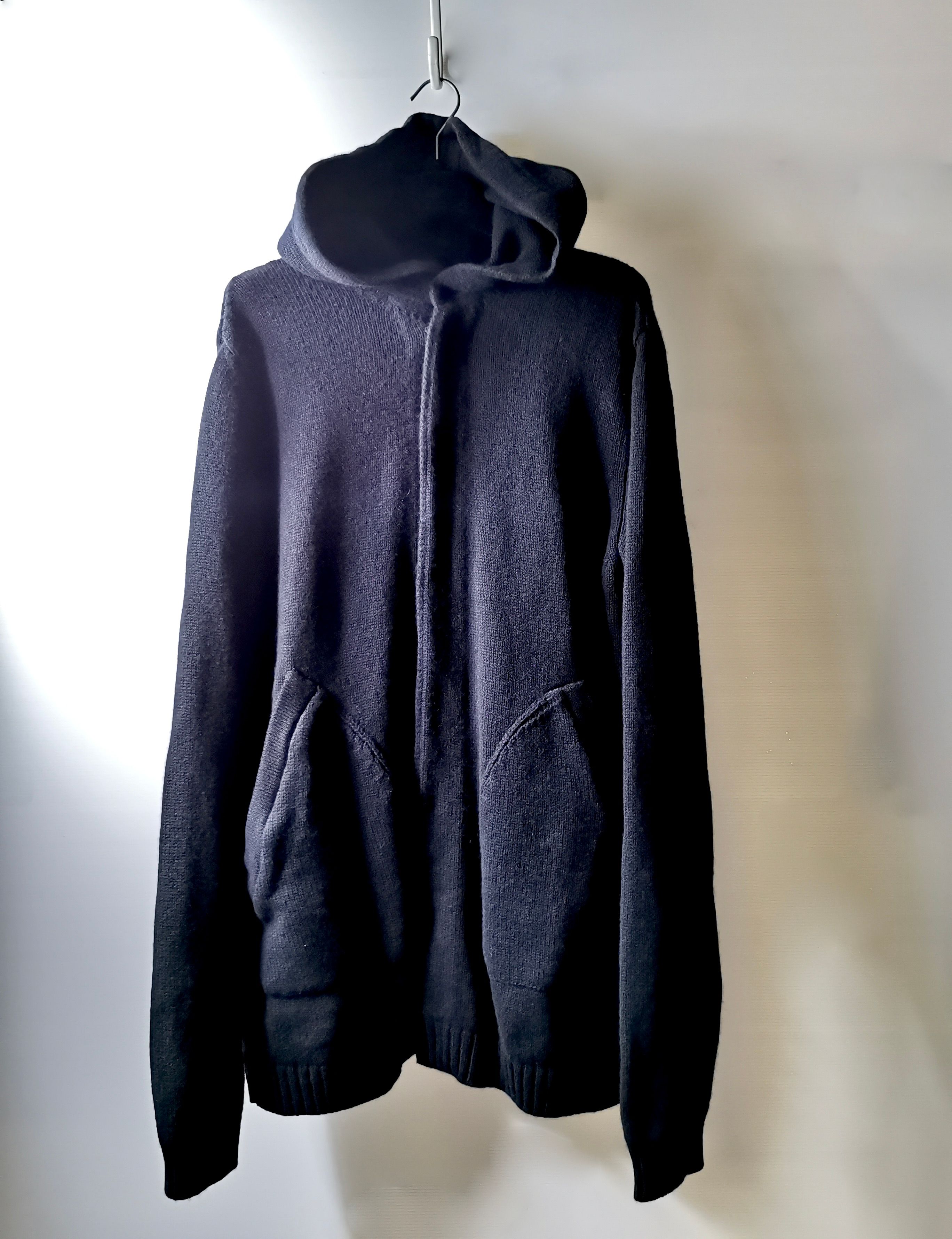 This super limited specially developed elongated extreme handmade pure cashmere hooded cardigan supersweater is one of only two of its kind currently made in the entire world exclusively for Labels in Sittard, Netherlands. It is a serious collector's piece and one of the most valuable pure cashmere sweater concepts of any luxury brand in the world today. Its whopping 830 grams of pure Cariaggi cashmere yarn material, components, construction and minimalist avant-garde proportions provide superb blanket-like comfort and an impeccable dynamic yet relaxed personal style for extensive travel, work and social occasions. Designed and built like no other cashmere sweater in the world... a wardrobe investment of undeniable excellence, design quality and long-term value.