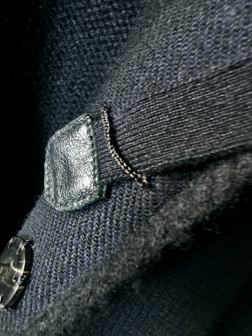 ...front patch pocket application, interior hood finishing work- all done entirely by hand with matching Cariaggi cashmere yarn knit trimmings...