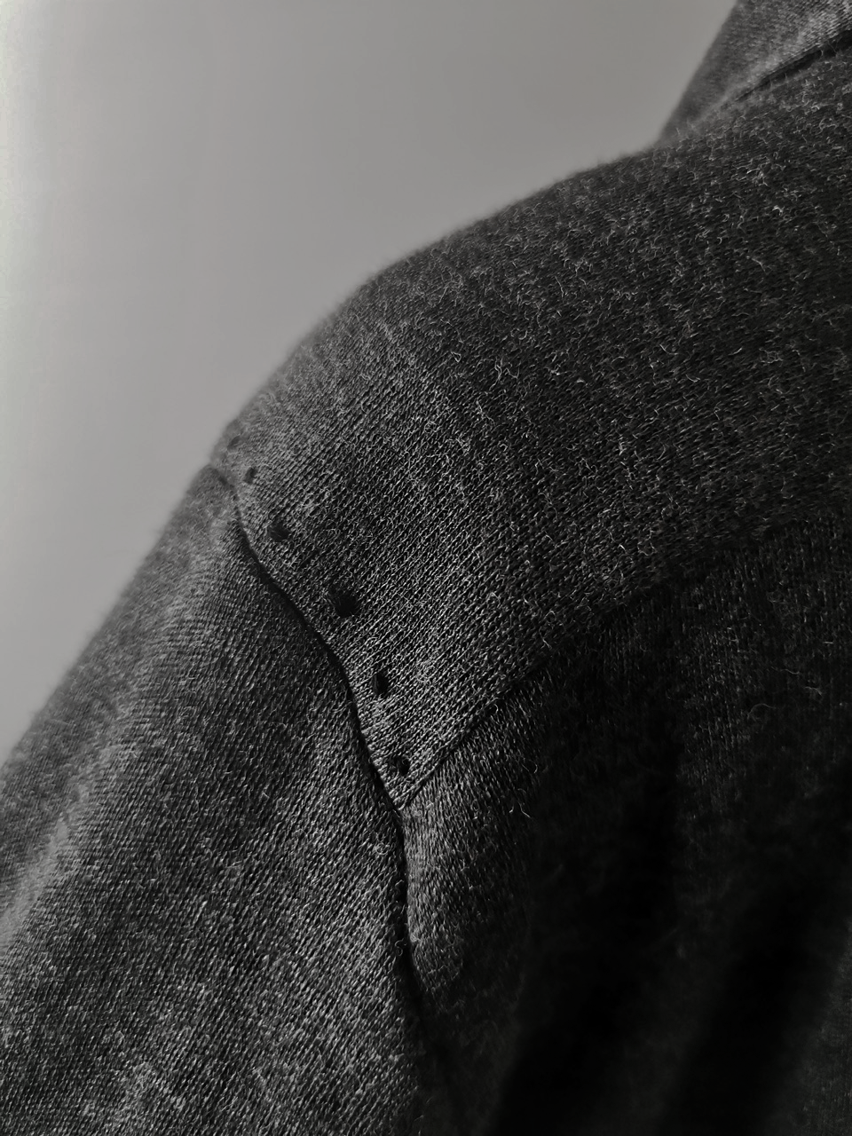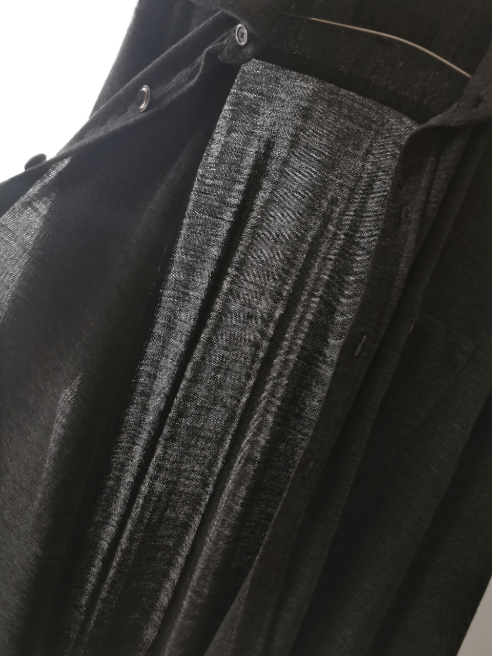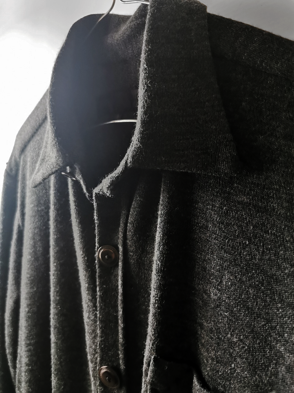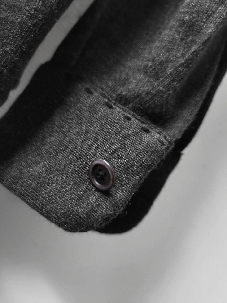 This special charcoal grey version of the super limited edition GBS Evolution VIII EV8K03 knit shirt cardigan design is one of only 5 pieces of its kind made in the entire world, each exclusively for Darklands in Berlin from a modified “extensionism” collection version of a classic European cut tailored men’s shirt pattern from our extensive tailoring research, and cut using an exclusive extrafine lightweight 300-320 gram pure virgin Merino wool fine jersey luxury knit suiting cloth created in Biella Italy, the world’s leading region for fine wool cloth production, then painstakingly washed, shaped and treated by hand in our world-famous GBS Superworkrooms at Cavarzere Venezia for extra aging, drape, flow and softness. The design features beautiful extensive entirely handstitched embroidery detail work using precious pure Cariaggi Italian deluxe cashmere yarns throughout the piece on center front, sleeve cuffs, pocket, and shoulder seams, a special cut with elegant proportions, exquisitely crafted tailored seamless pocket design, impeccable clean-finished French-seamed interior and all single-needle construction; extraordinary real corozo and bone button designs made for us by the world’s greatest living buttonmakers—Claudio and Cinzia Fontana in Parma and our signature hand-stitched buttonholes in pure silk Bozzolo Reale Milano Seta threads (which required at least 10-14 minutes to create each one on the challenging knit jersey fabric). The piece also features our world leading pure silk label created exclusively for us by Mion SpA in Torreglia- the first label in the luxury industry to completely eliminate plastic polyester yarns in it which was hand dyed to achieve its beautiful color and lustre and exquisitely attached by hand using pure silk threads. Variations in color and color density are not imperfections or irregularities, but specific characteristics of this special handmaking technique. Please treat buttons and buttonholes with care. We recommend professional clean only or hand wash extra gentle in cold water. Do not put in machine washer or dryer.