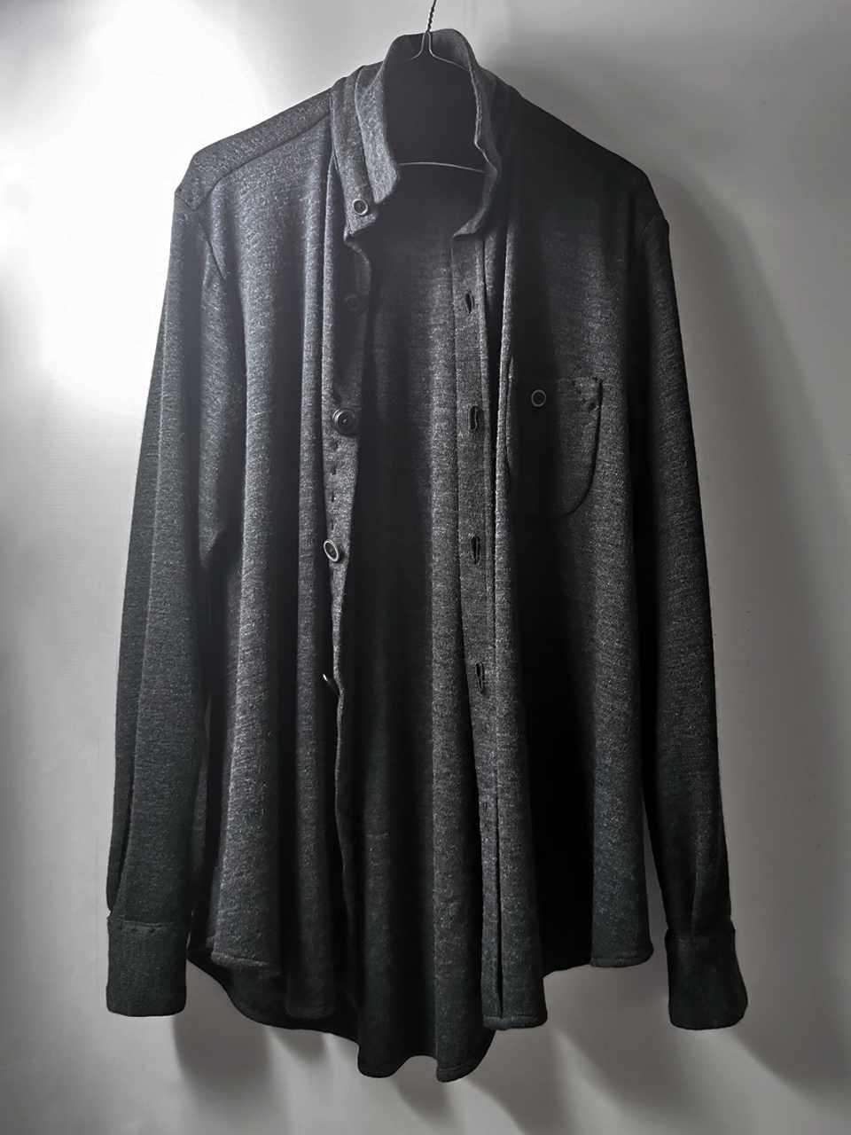 Created in a super limited series of just 5 examples in the world all exclusively for Darklands in Berlin, this amazing knit shirt cardigan design is both a pure GBS collector's design piece and an extremely versatile superlux avant-garde wardrobe investment. Its exquisite design, incredible materials, components, construction and advanced proportions provide superb comfort, ease of movement, and can be worn by men and women in a wide range of ways for travel, work and social occasions. Designed and built like no other shirt in the world ... this special GBS Evolution VIII EV8K03 is a luxury wardrobe investment of long-term value.
