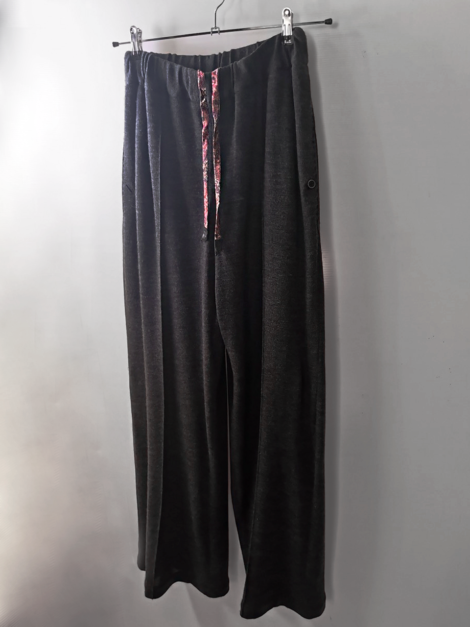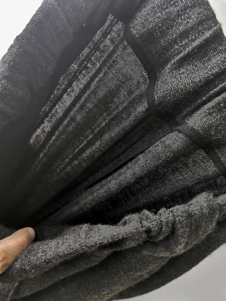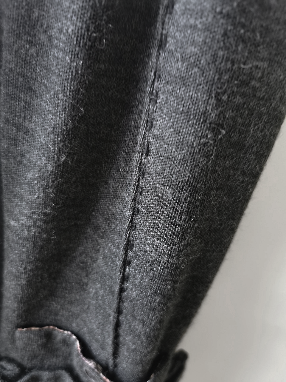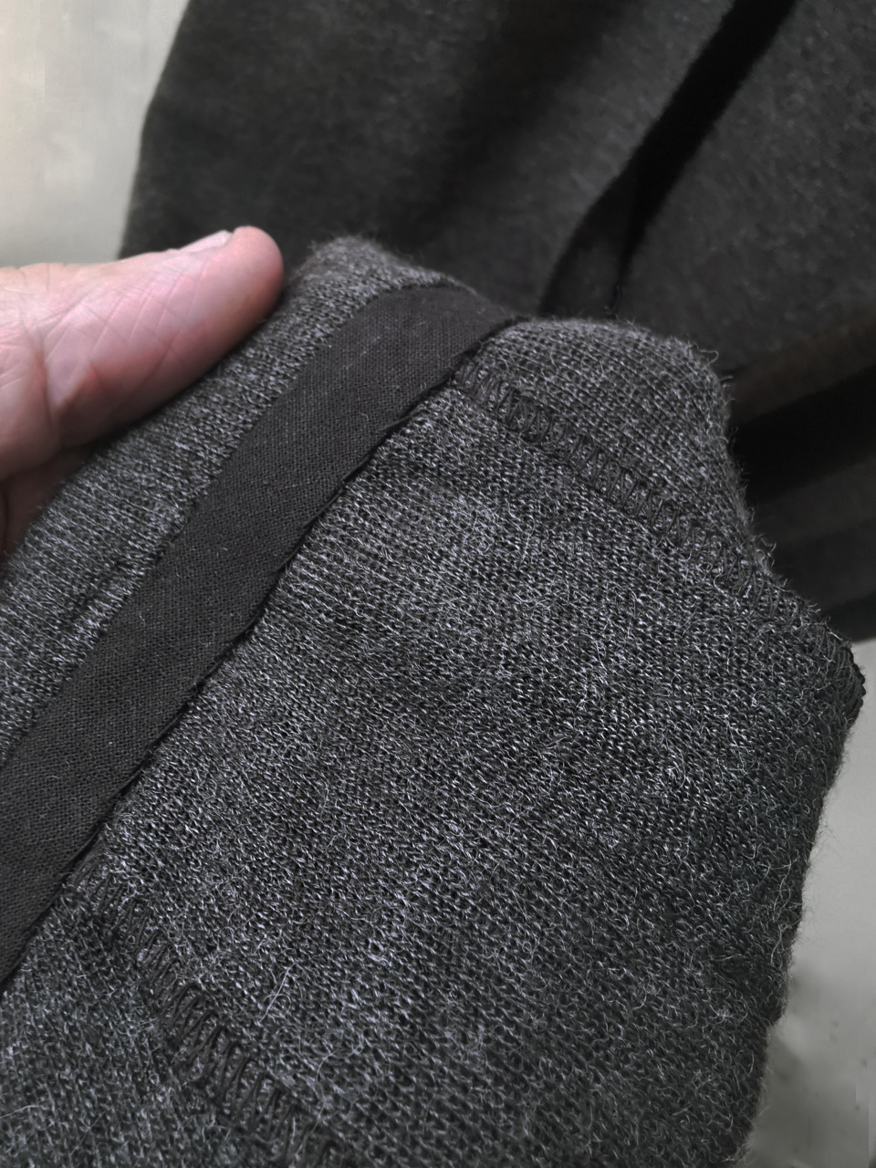 This special charcoal grey version of the super limited edition GBS Evolution VIII EV8P01 trouser design is one of only 5 pieces of its kind made in the entire world, each exclusively for Darklands in Berlin from a modified “extensionism” collection version of our 1970-80’s European Adi Dassler-type tracksuit tailored elastic drawstring waist trouser pattern from our extensive tailoring research, and cut using an exclusive extrafine lightweight 300-320 gram pure virgin Merino wool fine jersey luxury knit suiting cloth created in Biella Italy, the world’s leading region for fine wool cloth production, then painstakingly washed, shaped and treated by hand in our world-famous GBS Superworkrooms at Cavarzere Venezia for extra aging, drape, flow and softness. The design features extensive handstitched embroidery detail work using pure Cariaggi Italian deluxe cashmere yarns a special cut with elegant proportions, exquisitely crafted hand cut double patch back pocket design with impeccably tailored in-seam front pockets, beautiful interior finishing design incorporating an elegant pure Como silk drawstring fabric with vintage leather tip details, exquisite pure Como silk and Italian luxury satin tape finished seams throughout, generous 2,5 centimeter seam allowances on both outseam and inseam stitches that allow the trouser to be altered and let out a full size larger than its original cut, expertly executed elastic waist construction all performed by hand (unlike the original garment), and real hand sewn taped hemlines (not machined) that required over 2 hours of expert work to achieve their beautiful clean finish and superior durability and tailored elegance), extraordinary hand dyed real corozo and horn button designs made for us by the world’s greatest living buttonmakers—Claudio and Cinzia Fontana in Parma and our signature hand-stitched buttonholes in pure silk Bozzolo Reale Milano Seta threads (which required at least 10-14 minutes to create each one on the challenging knit jersey fabric). The piece also features our world leading hand dyed pure silk label created exclusively for us by Mion SpA in Torreglia- the first label in the luxury industry to completely eliminate plastic polyester yarns in it which was hand dyed to achieve its beautiful color and lustre and exquisitely attached by hand using pure silk threads. Variations in color and color density are not imperfections or irregularities, but specific characteristics of this special technique. Please treat buttons and buttonholes with care. We recommend professional clean only or hand wash extra gentle in cold water. Do not put in machine washer or dryer.