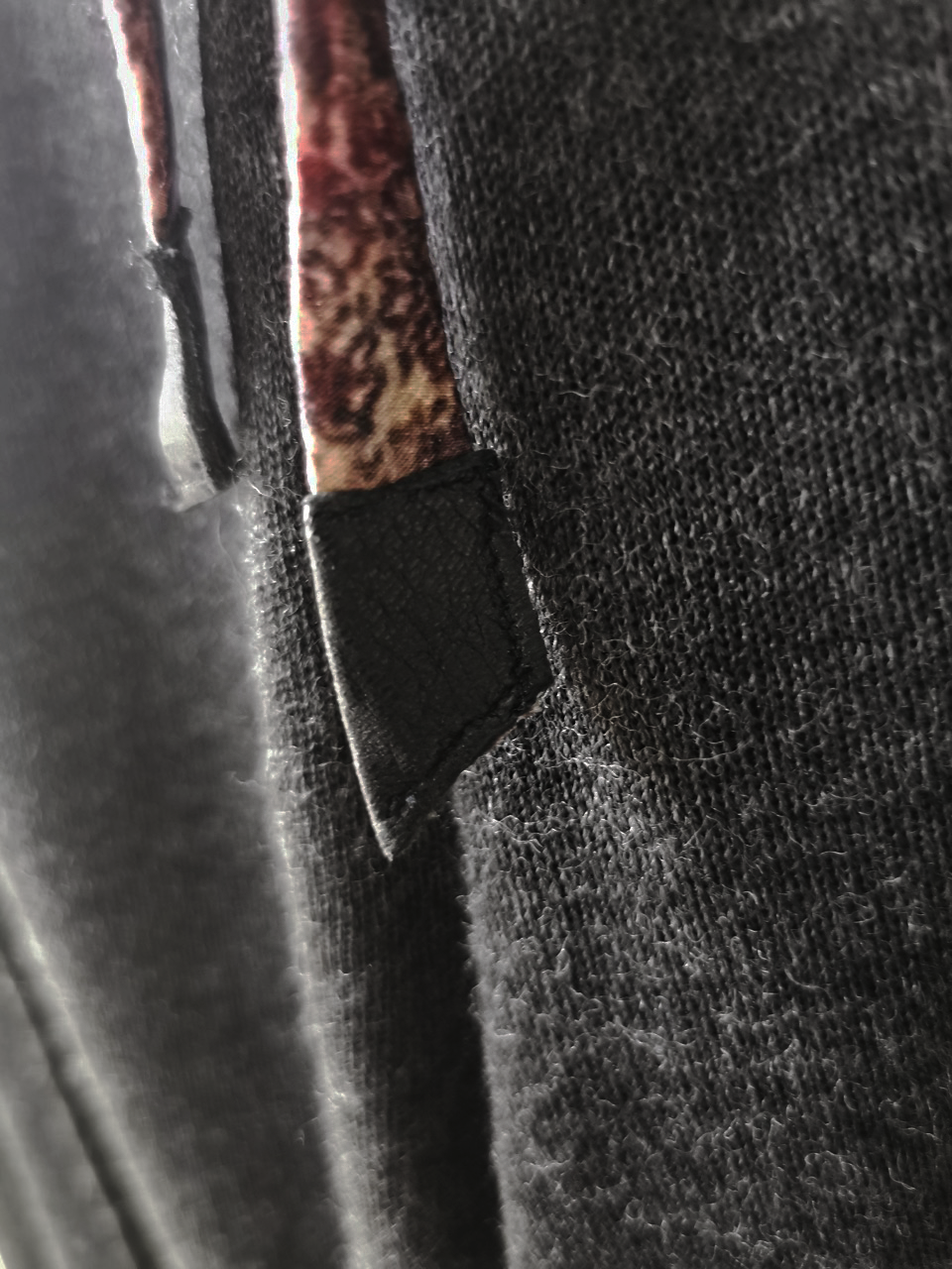 ...beautiful interior finishing design incorporating an elegant pure Como silk drawstring fabric with vintage leather tip details, exquisite pure Como silk and Italian luxury satin tape finished seams throughout...