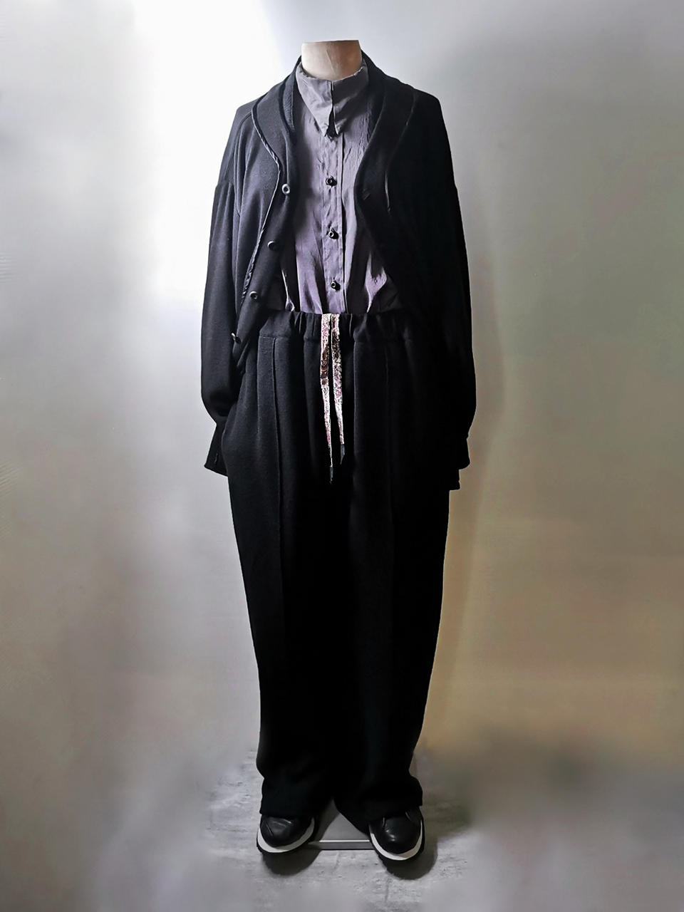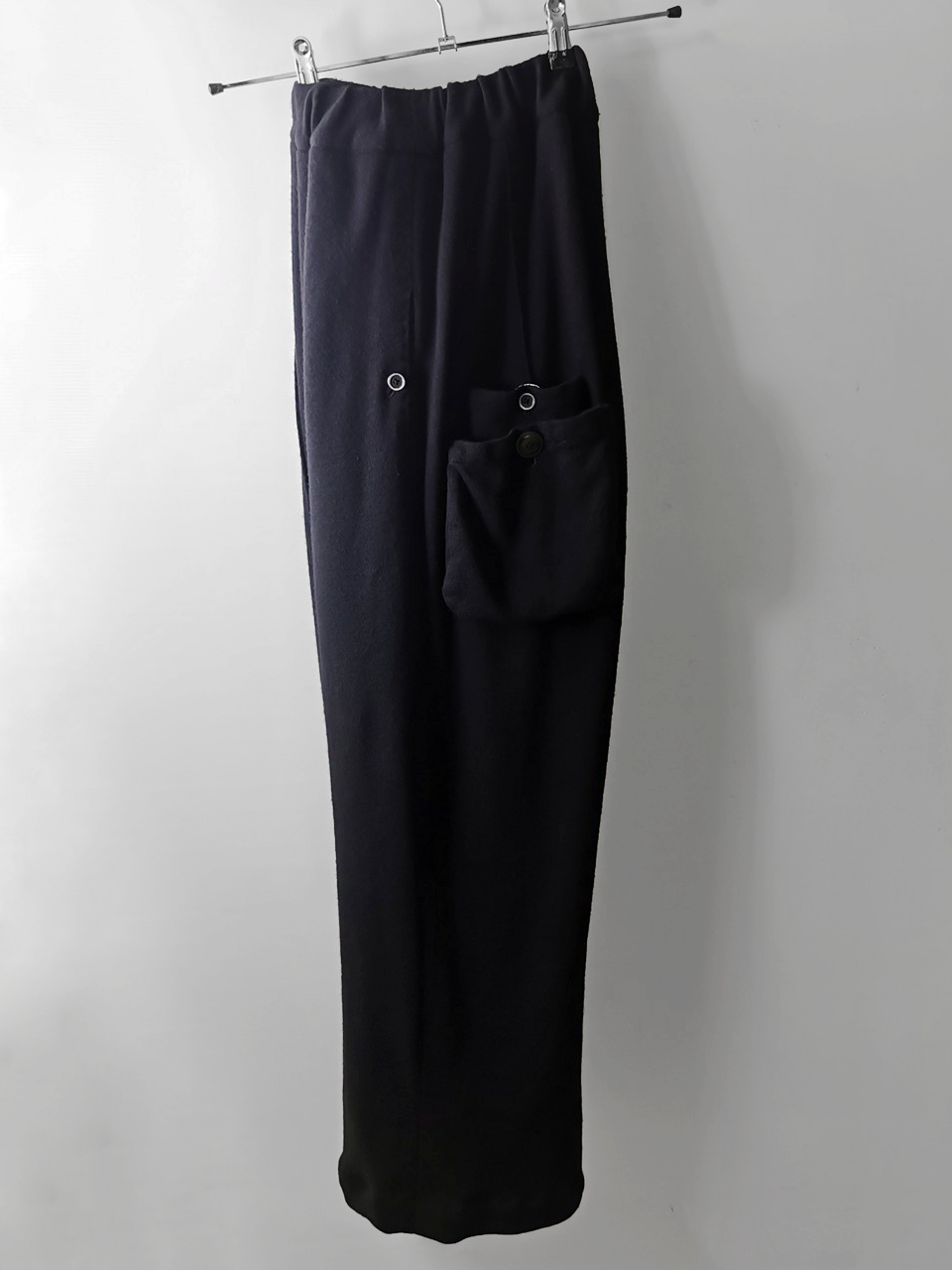 This special black version of the super limited edition GBS Evolution VIII EV8P01 trouser design is one of only 2 pieces of its kind currently being made in the entire world, each exclusively for Leclaireur in Paris from a modified “extensionism” collection version of our 1970-80’s European Adi Dassler-type tracksuit tailored elastic drawstring waist trouser pattern from our extensive tailoring research, and cut using an exclusive extrafine lightweight 300-320 gram pure virgin Merino wool fine jersey luxury knit suiting cloth created in Biella Italy, the world’s leading region for fine wool cloth production, then individually hand dyed in our world-famous GBS Superworkrooms at Cavarzere Venezia using a process which required over 8 hours of expert work to achieve its special colors, patina effects, shaping and softness. The design features extensive handstitched embroidery detail work using pure Cariaggi Italian deluxe cashmere yarns a special cut with elegant proportions, exquisitely crafted hand cut double patch back pocket design with impeccably tailored in-seam front pockets, beautiful interior finishing design incorporating an elegant pure Como silk drawstring fabric with vintage leather tip details, exquisite pure Como silk and Italian luxury satin tape finished seams throughout, generous 2,5 centimeter seam allowances on both outseam and inseam stitches that allow the trouser to be altered and let out a full size larger than its original cut, expertly executed elastic waist construction all performed by hand (unlike the original garment), and real hand sewn taped hemlines (not machined) that required over 2 hours of expert work to achieve their beautiful clean finish and superior durability and tailored elegance), extraordinary hand dyed real corozo and horn button designs made for us by the world’s greatest living button makers—Claudio and Cinzia Fontana in Parma and our signature hand-stitched buttonholes in pure silk Bozzolo Reale Milano Seta threads (which required at least 10-14 minutes to create each one on the challenging knit jersey fabric). The piece also features our world leading hand dyed pure silk label created exclusively for us by Mion SpA in Torreglia- the first label in the luxury industry to completely eliminate plastic polyester yarns in it which was hand dyed to achieve its beautiful color and luster and exquisitely attached by hand using pure silk threads. Variations in color and color density are not imperfections or irregularities, but specific characteristics of this special technique. Please treat buttons and buttonholes with care. We recommend professional clean only or hand wash extra gentle in cold water. Do not put in machine washer or dryer.