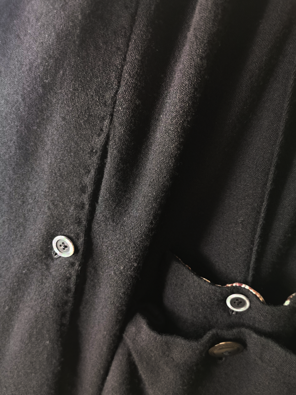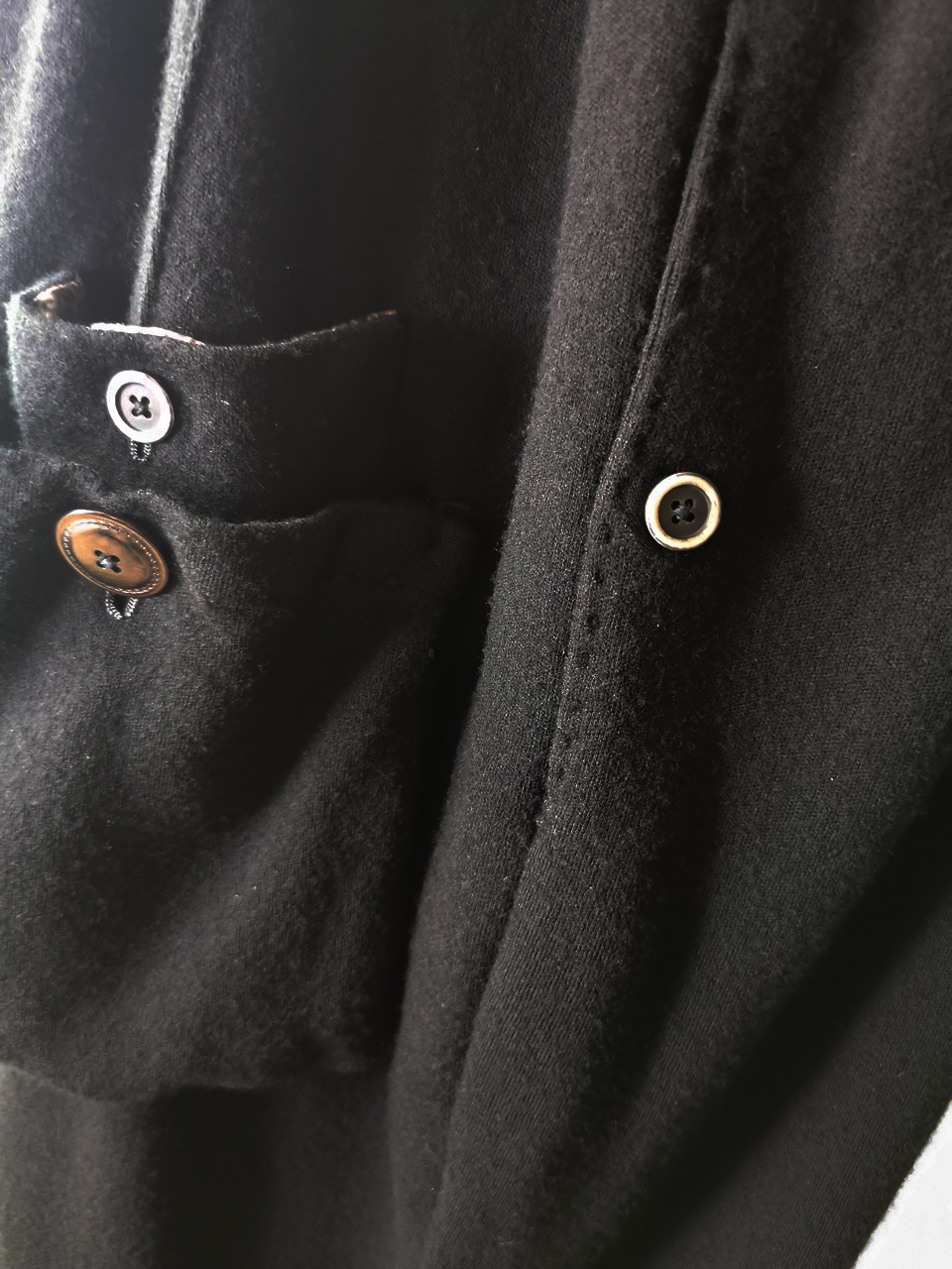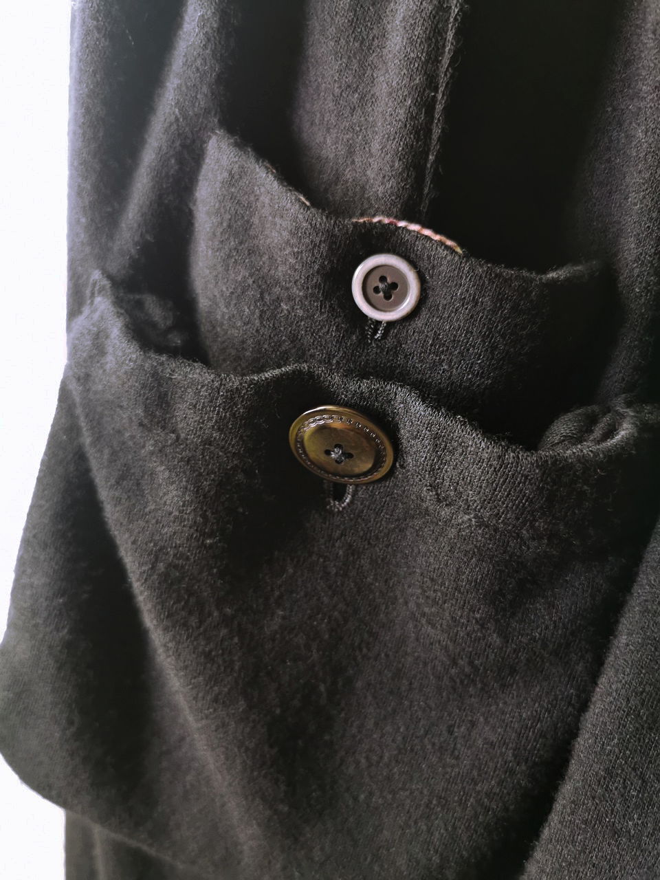...and our signature hand-stitched buttonholes in pure silk Bozzolo Reale Milano Seta threads (which required at least 10-14 minutes to create each one on the challenging knit jersey fabric)...