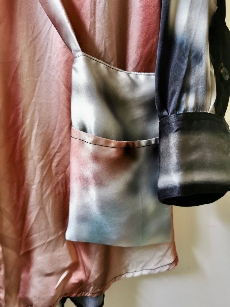 Created in a limited series of just 10 examples in the world, this amazing shirt and cross-body bag set is both a pure GBS collector's design piece and an extremely versatile superlux avant-garde wardrobe investment. Its dramatic print design, incredible materials, components, construction and advanced length and proportions provide superb comfort, ease of movement, and can be worn by men and women in a wide range of ways for travel, work and social occasions. Designed and built like no other silk shirt in the world... the GBS EV8S07 is a luxury wardrobe investment of long-term value.