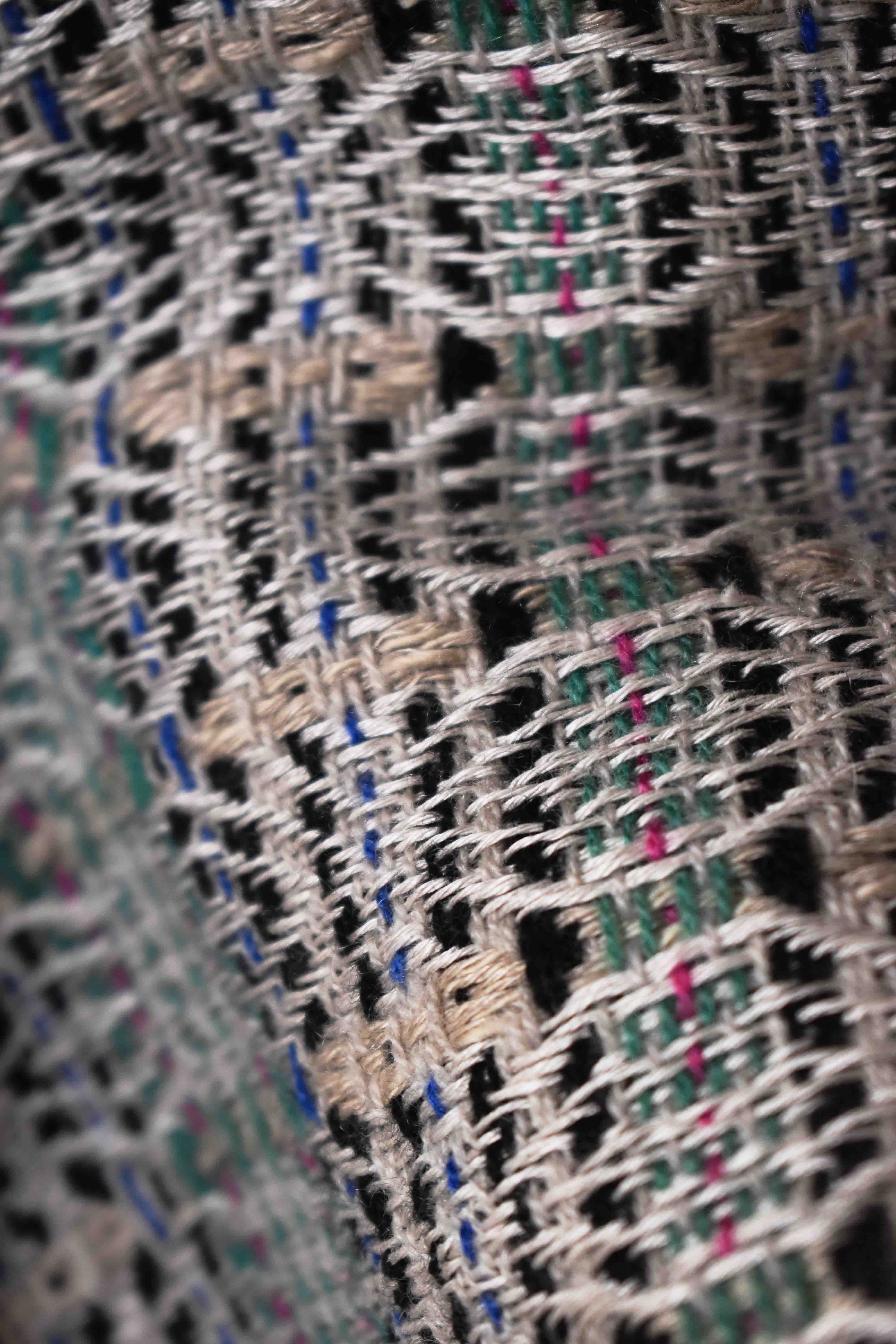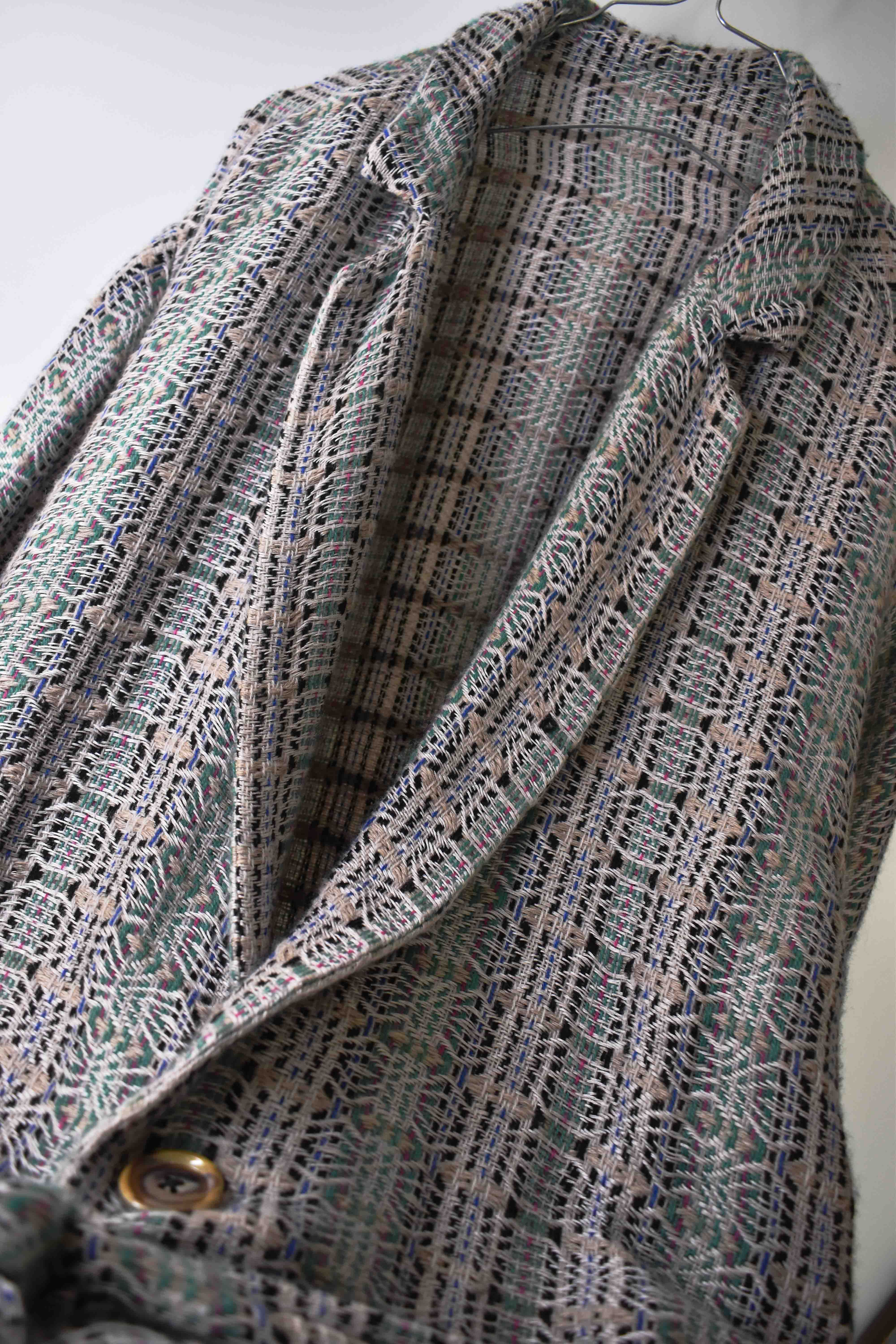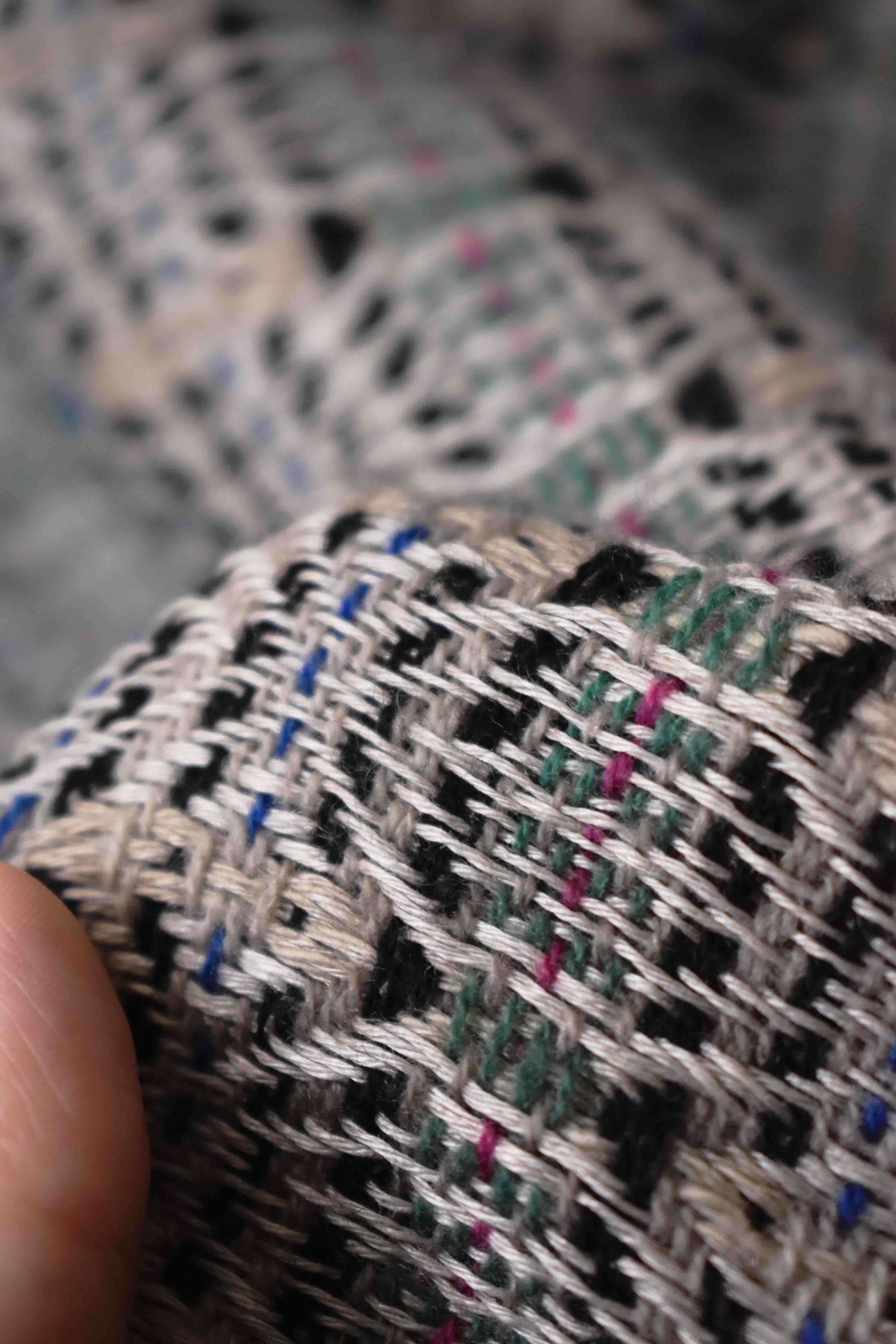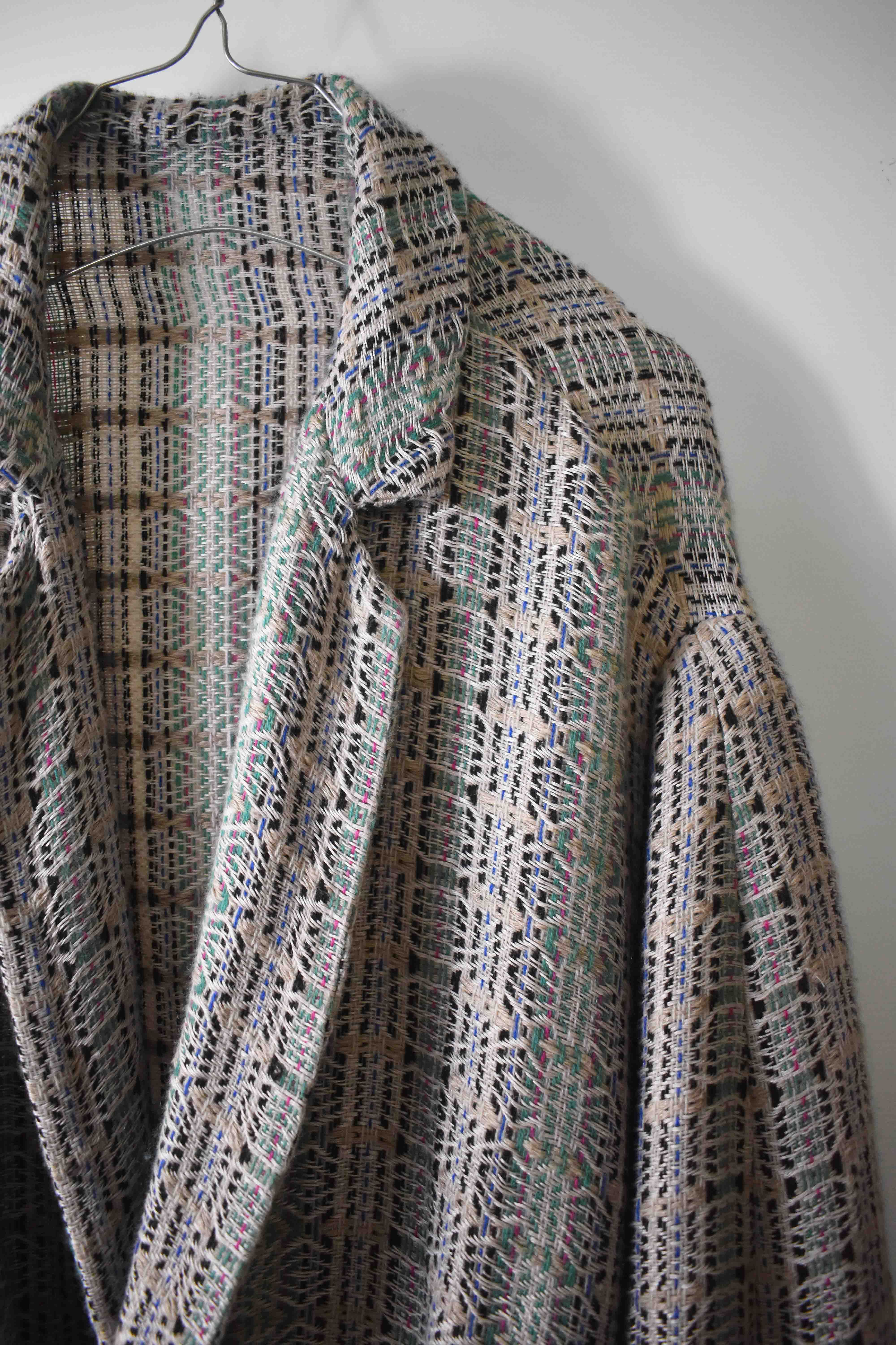 ...and cut in a rare completely handwoven Italian pure Cariaggi cashmere yarn and deluxe linen textured weave complex diamond abstract plaid fabric created exclusively for us by Carlo Colombo on the 18th century wooden hand looms of Tessitura La Colombina in Badoere di Morgano, Italy requiring almost 2 full days to create just enough cloth to make the single jacket...