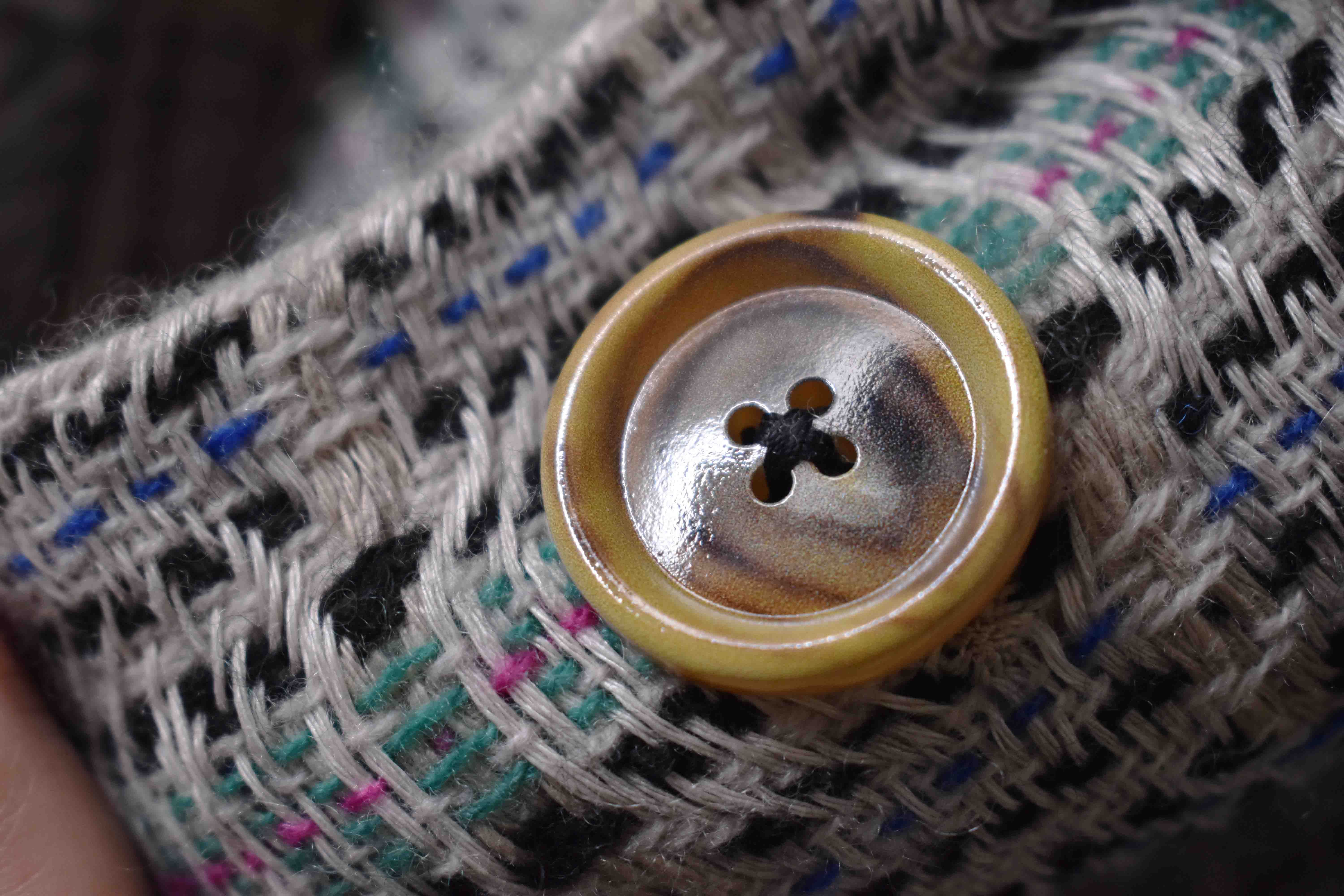 ...stunning real horn buttons made only for us by the world's greatest living buttonmakers-- Claudio and Cinzia Fontana in Parma Italy; and our signature hand sewn buttonholes in luxurious pure silk Bozzolo Milano Seta Reale threads (which required at least 12-18 minutes to create each one on the challenging handwoven fabric)...