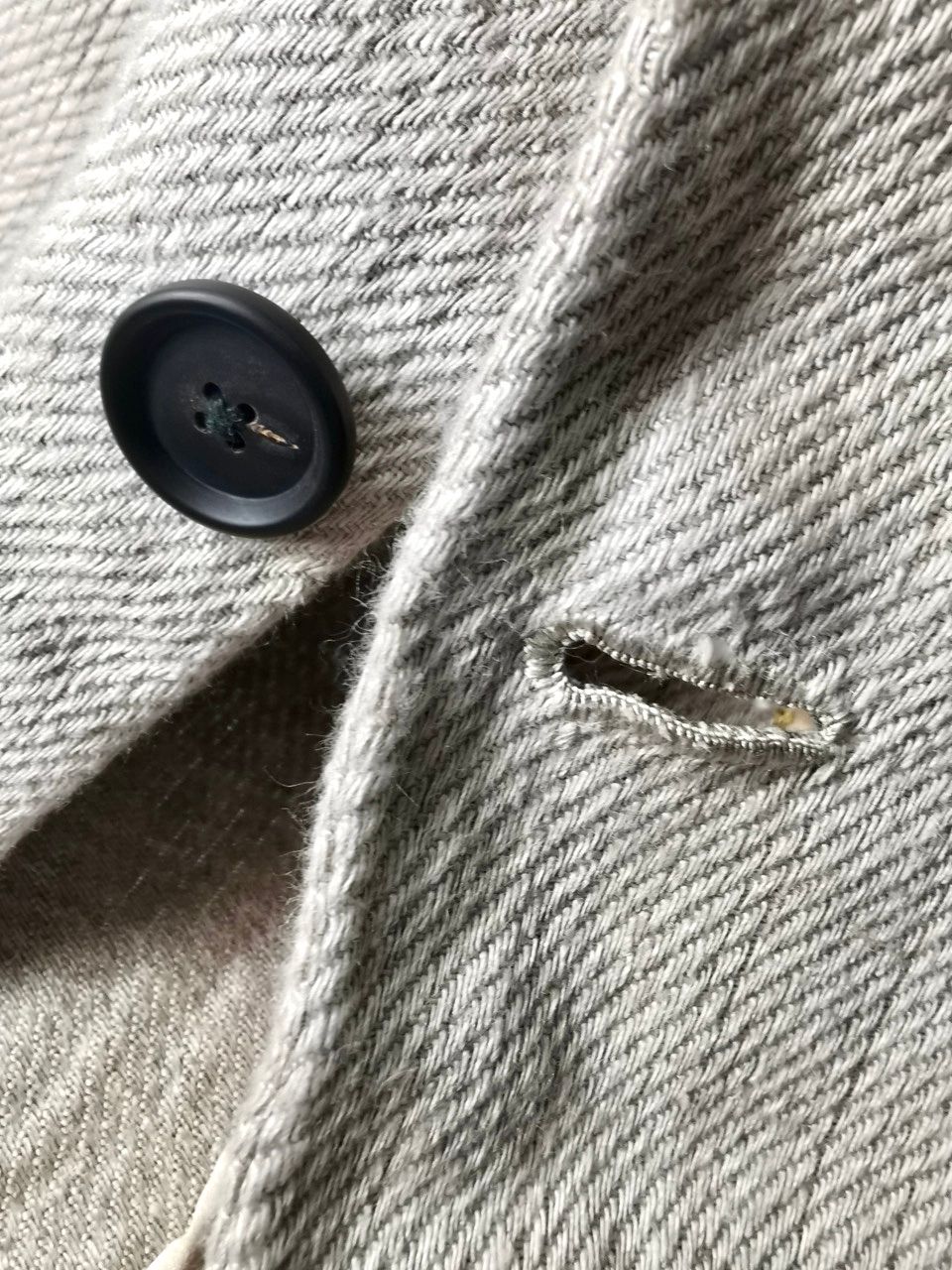 And an extraordinary button story of dark elegant opaque finish real horn designs made for us by the world’s greatest living buttonmakers--Claudio and Cinzia Fontana in Parma, Italy--and no less than 10 of our signature real hand stitched buttonholes (each one required 12-16 minutes to cut and sew on the challenging cloth)... over 3 hours of work on buttonholes and buttons alone) in pure silk Bozzolo Reale Seta Milan threads...