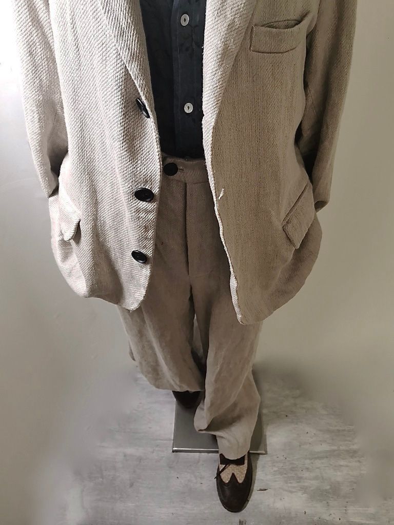 SPECIAL EXCLUSIVE HAND MADE DESIGN HAND TEA DYED SUPERLUX LUIGI PARISOTTO PURE LINEN FAT TWILL WEAVE LUXURY SUITING CLOTH WITH PURE COMO SILK LINING STORY, SILK HAND MADE BUTTONHOLES & FONTANA DESIGN REAL HORN BUTTONS