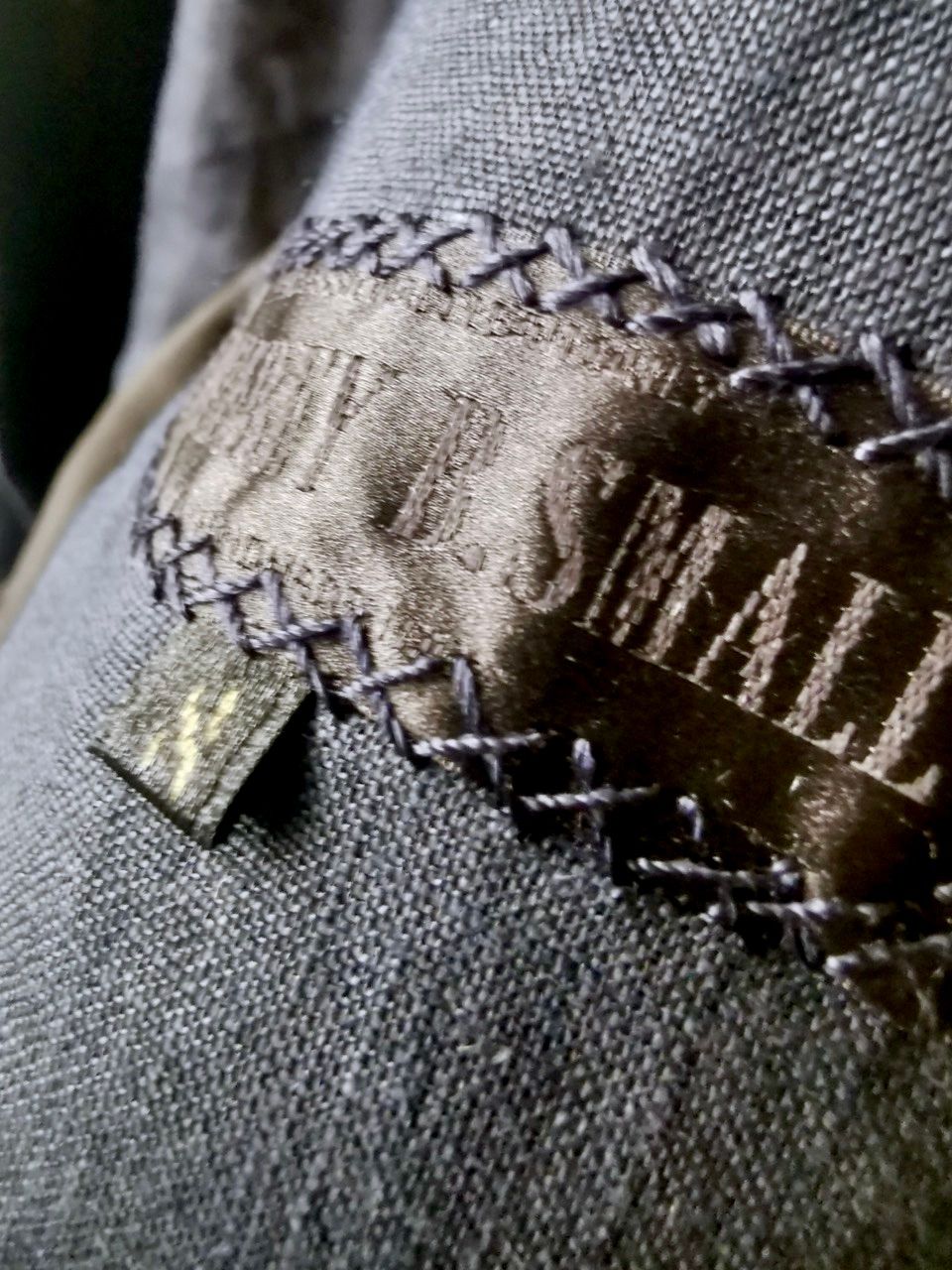 The label itself is pure Italian silk and costs a minor fortune relative to our competitors... woven in Torreglia by Mion, the best label makers in the world- it's the first label in the luxury industry without a single molecule of plastic in it. And that includes the entire garment--all natural biodegradable premium precious materials and components--zero plastics anywhere. That's real sustainability, not greenwashing corporate luxury brand bs. And you won't get that scratchy itchy feeling on your skin from the poly and plastic labels they use. It's also just plain beautiful, and because it's pure silk, it lends itself to be made even more beautiful in our amazing GBS "Tintoria" hand dye operations at Cavarzere Venezia, where we custom-designed and personalized if for this single special jacket design--and beautifully attached it using pure silk threads all by hand...