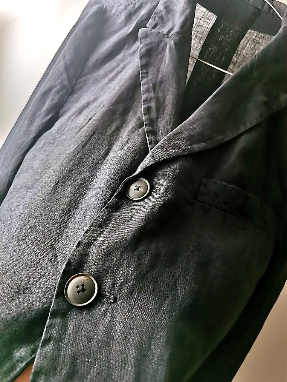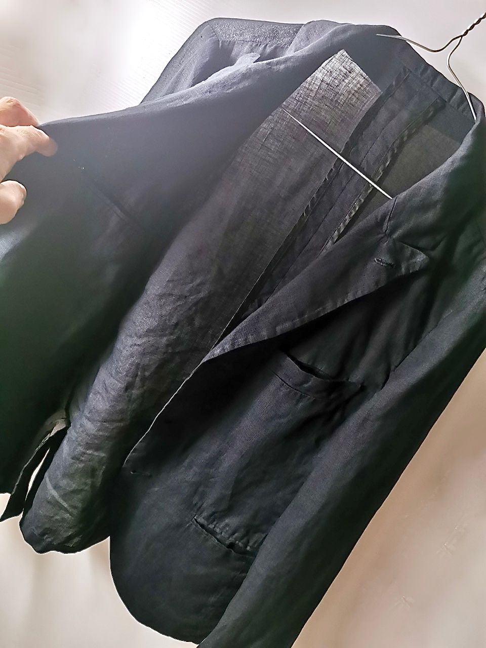 SPECIAL HAND DYED VARESE “SUPERLEGGERO” SUPERLIGHT PURE HANDKERCHIEF LINEN LUXURY SUITING CLOTH WITH BEMBERG LININGS, SILK HAND STITCH BUTTONHOLES & FONTANA ADVANCED DESIGN REAL HORN BUTTONS