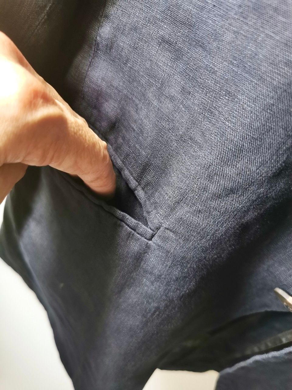 ... and all handcut besom, welt and inside chest pockets which required between 20-30 minutes to expertly constuct each one fully-self lined in the expensive pure Italian Varese linen fabric instead of skimping and using cheaper pocket lining materials like other luxury brands do. This long-time value approach to maximum comfort and durability costs more as it uses more of the precious fabric but results in incredibly comfort when you put your hands in the pockets of this jacket...