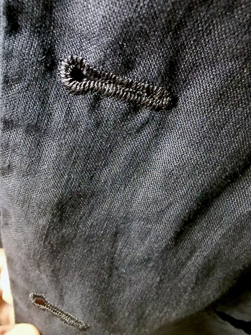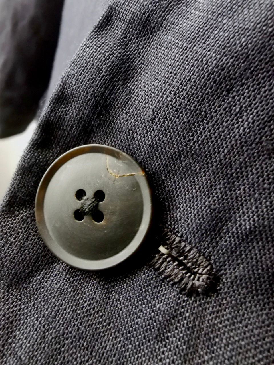 So, we spent more than 10 times more on our buttons and threads, and the work that's required to apply them onto this jacket than any other luxury brand... It’s all part of our art and the phenomenal value of our clothing pieces. This amazing GBS superjacket comes with exceptional new advanced artisanal "gommatizzato" finely rubberized finish real horn button designs created only for us by the world’s greatest living buttonmakers--Claudio and Cinzia Fontana in Parma Italy--and no less than 10 of our signature real hand-stitched buttonholes (that required at least 10-12 minutes to create each one—over 2 hours of painstaking master work just to make the buttonholes for the single jacket) in luxurious pure silk Bozzolo Reale Milano Seta threads, which cost over 1.40 euros for a single meter of thread. Each button costs us on average over 5 euros wholesale, about 10 times more than the average luxury or designer label button, and is completely sewn on by hand using only sustainable pure cotton (no polyester, no plastics) high density Italian Tre Stelle brand threads for extra strength and the smooth, secure opening and closing that you only experience when you put on a GBS...
