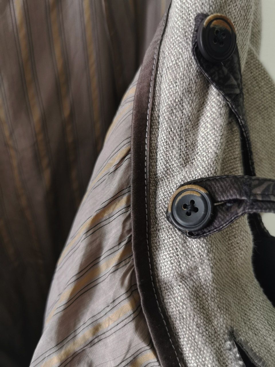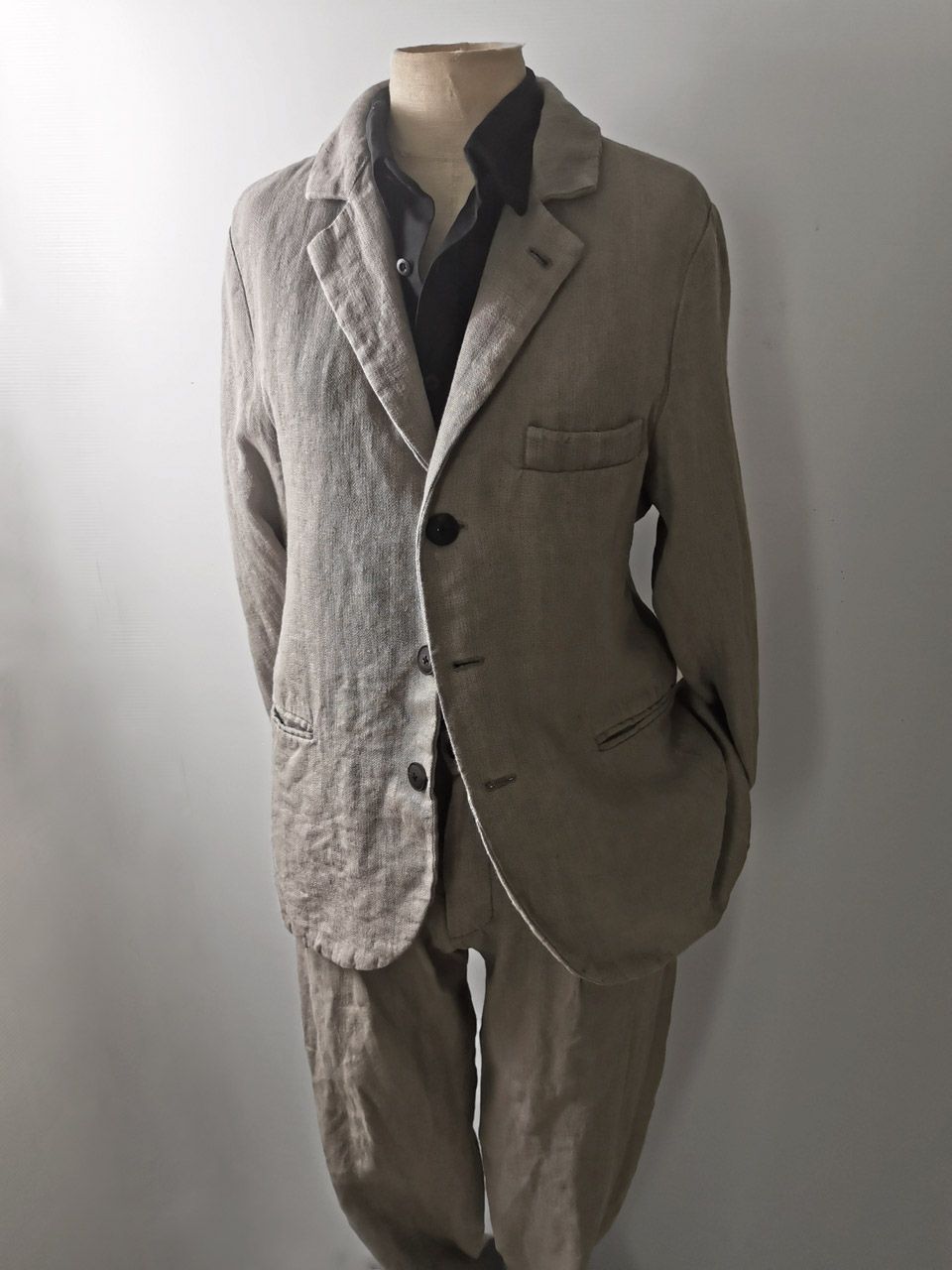 CUT from the same exclusive hand dyed L. Parisotto "Lino Geo" 100% pure linen, this limited edition handmade classic 1910's single breasted notch collar 3-button hand pad stitched fitted jacket is the perfect jacket to pair with these incredible trousers.