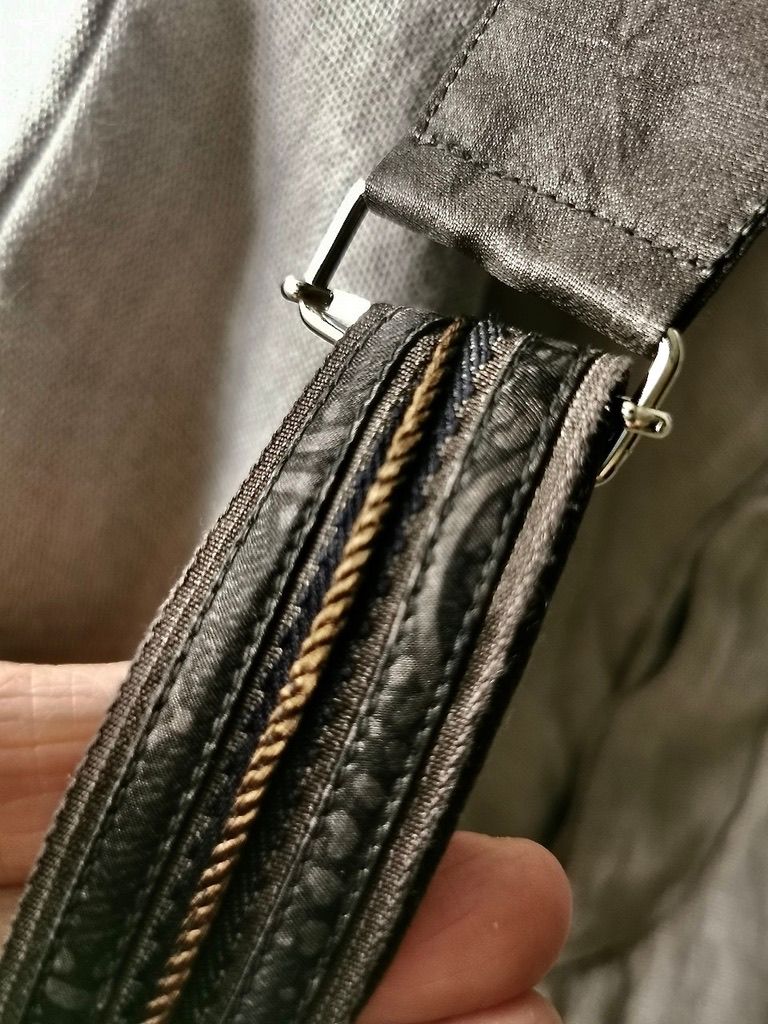 The design features real hand made silk suspenders using our own pure Como silk fabrics and special silk woven tapes and trims that were made specially for us by the venerable Nastrificio Victor mills in Piove di Sacco di Padova, impeccable handbuilt hidden button fly front construction, handcut front and rear besom pockets, beautifully clean-finished interior construction with pure silk taped seams, real hand sewn pure GBS Como Silk taped hemlines (not machined), generous 2,5 centimeter seam allowances on major fitting seams that allow the trouser to be altered and let out...