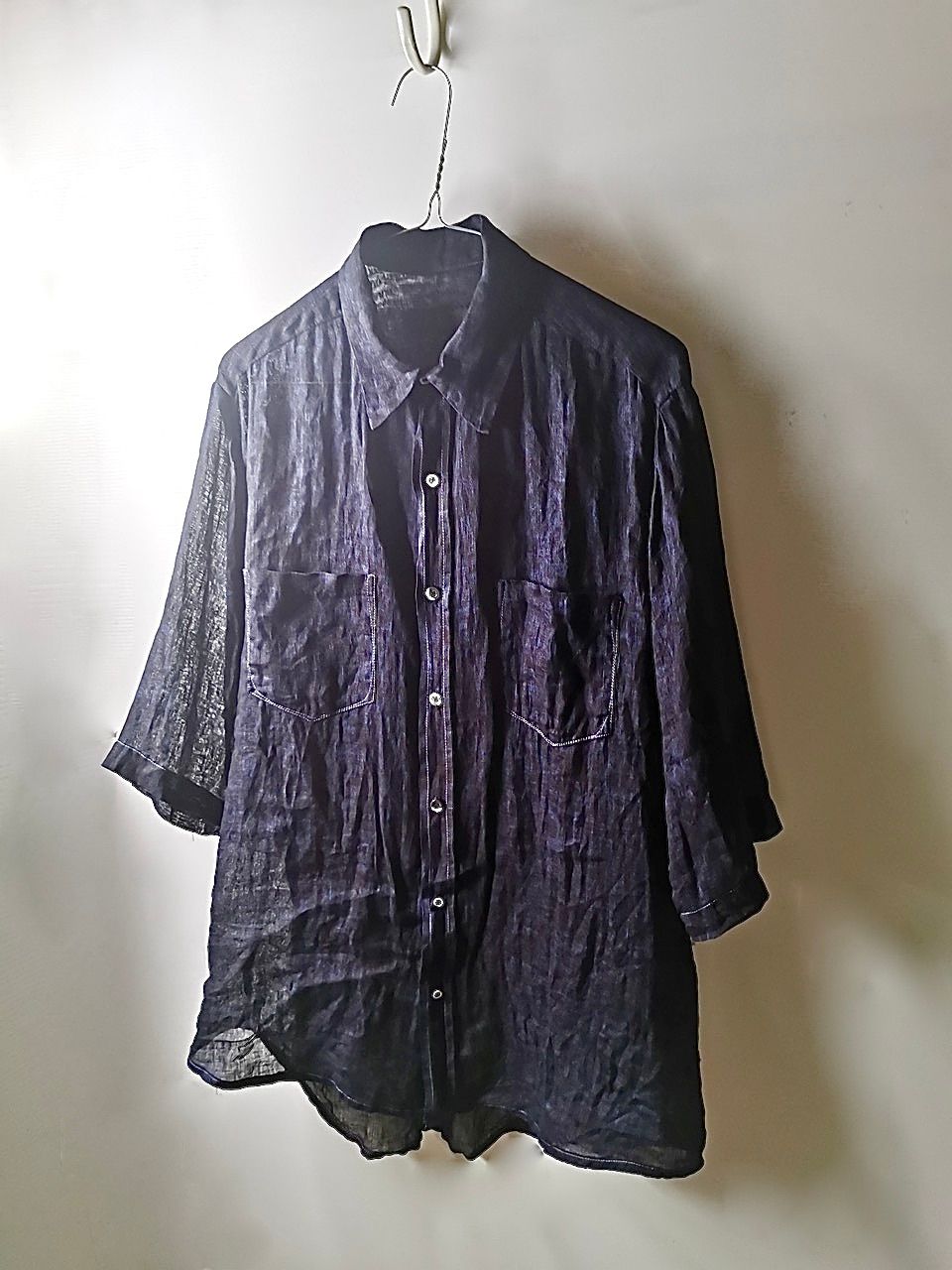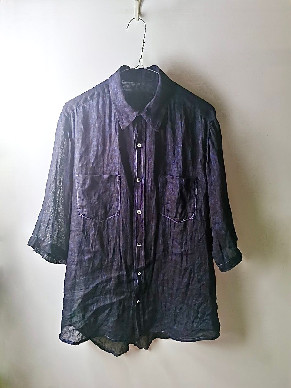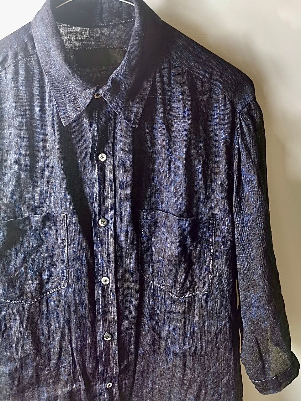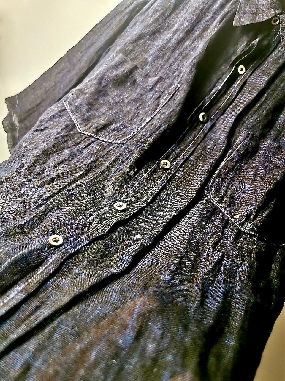 THIS super limited edition GBS Evolution IX EV9S03 handmade shirt design is one of only 9 pieces of its kind currently being made by hand for the entire world. It was created from a modified classic short-sleeve tailored shirt pattern from our extensive tailoring research and cut using an exclusive very special "superleggero" ultralight purelinen exclusive Botticelli floral print garza shirting cloth created only for us in Varese Italy-the world's leading region for fine cotton and linen cloth production, then individually dyed by hand in our world-famous GBS Superworkrooms at Cavarzere Venezia using a process that required over 8 hours of expert work to achieve its extraordinary colors, patina effects, shaping and softness. The design features special pocket design and detailing from late nineteenth century American western work wear period research combined with extraordinary comfort and ease of wear, expert single-needle stitched tailoring throughout, beautifully finished all french seam interior construction, real mother-of-pearl buttons made for us by the Lanzanova family of pearl button specialists in Brescia, and no less than 9 of our signature hand sewn buttonholes in pure silk Bozzolo Reale Seta Milan threads (each one required 10-14 minutes to cut and sew on the challenging loosely woven garza fabric) which required 2 hours of painstaking expert work just to make the buttonholes alone for the single shirt. The piece also features our world leading pure silk label created exclusively for us by Mion SpA in Torreglia which is the first label in the luxury industry to completely eliminate plastic polyester yarns in it—beautifully attached all by hand using pure silk threads.