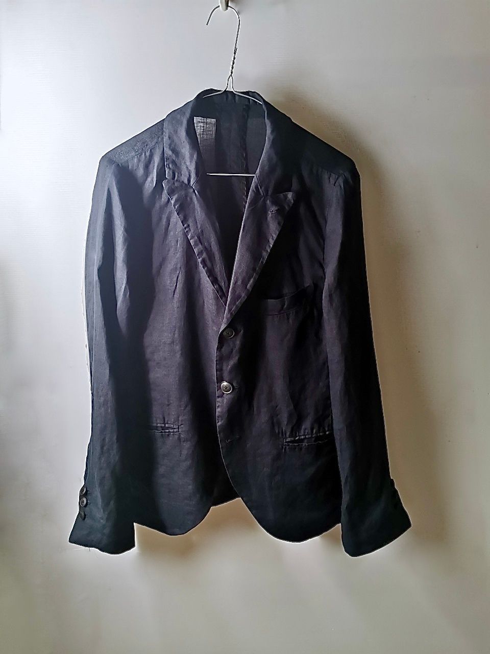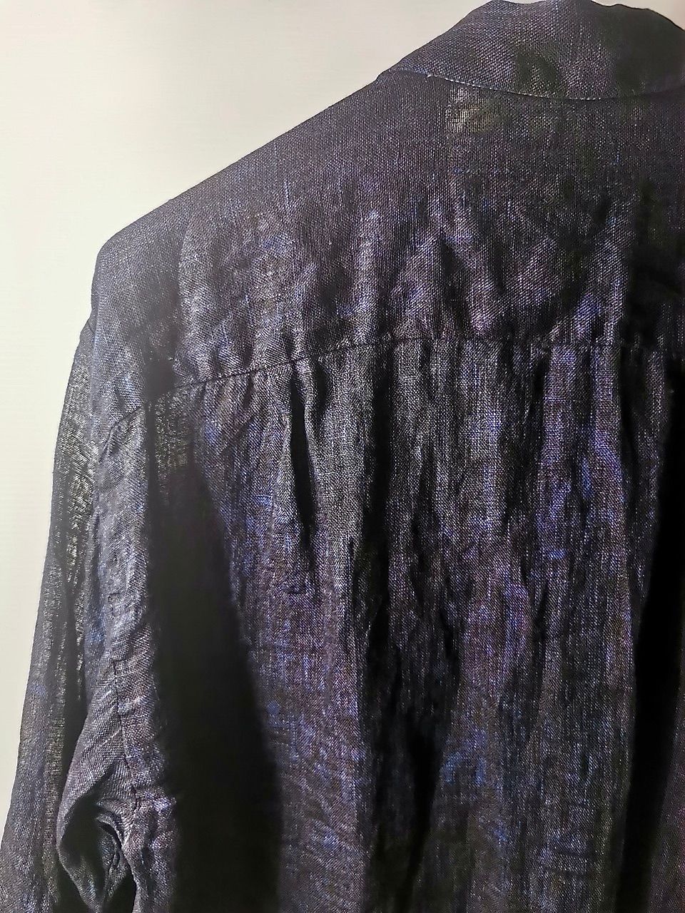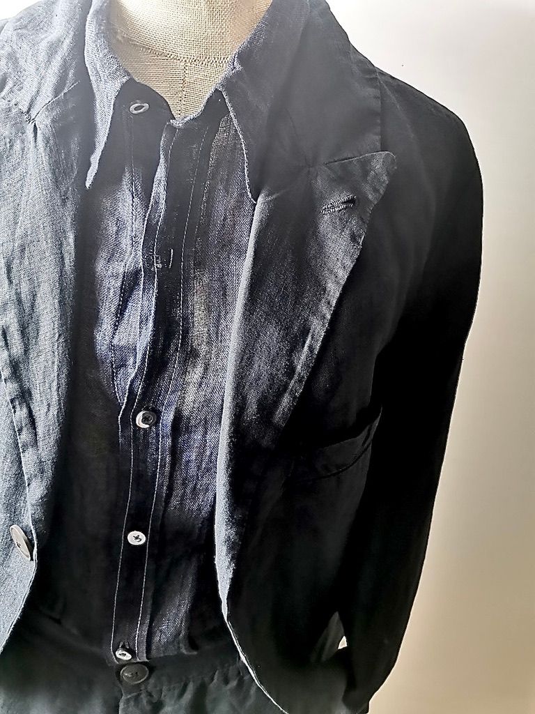 CUT from exclusive hand dyed Varese "Superleggero" pure handkerchief linen suiting, this super limited edition handmade classic 3-button peak-lapel jacket with side vents is the perfect jacket to pair with this incredible shirt.