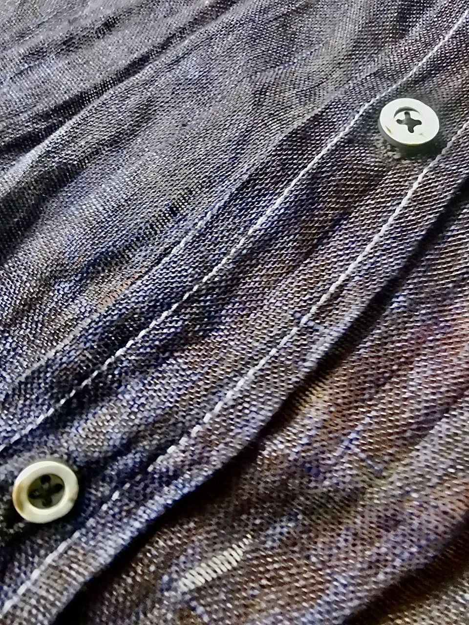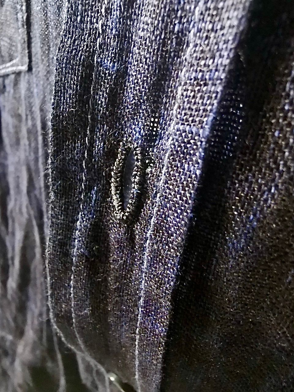 ...and no less than 9 of our signature hand sewn buttonholes in pure silk Bozzolo Reale Seta Milan threads (each one required 10-14 minutes to cut and sew on the challenging loosely woven garza fabric) which required 2 hours of painstaking expert work just to make the buttonholes alone for the single shirt.