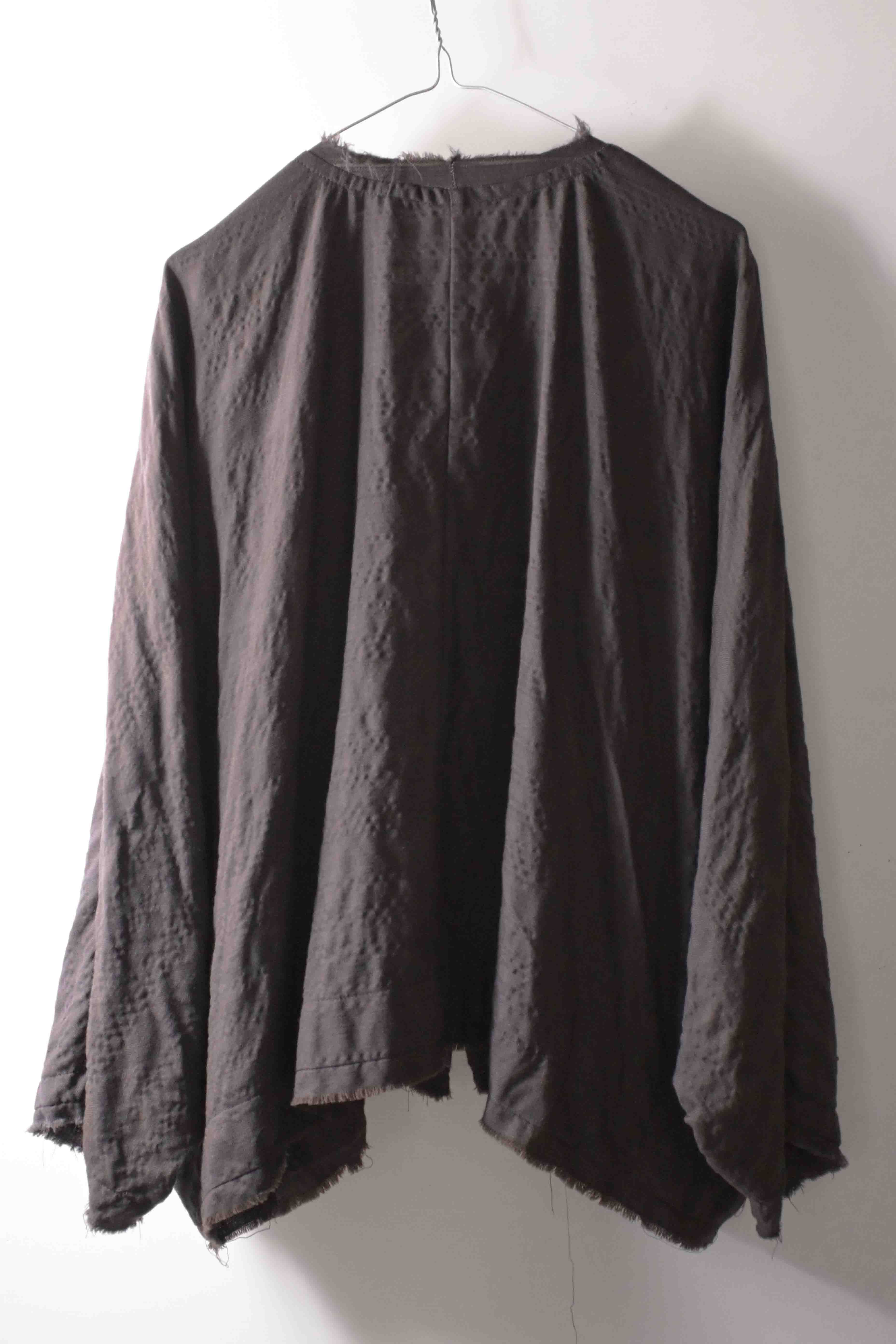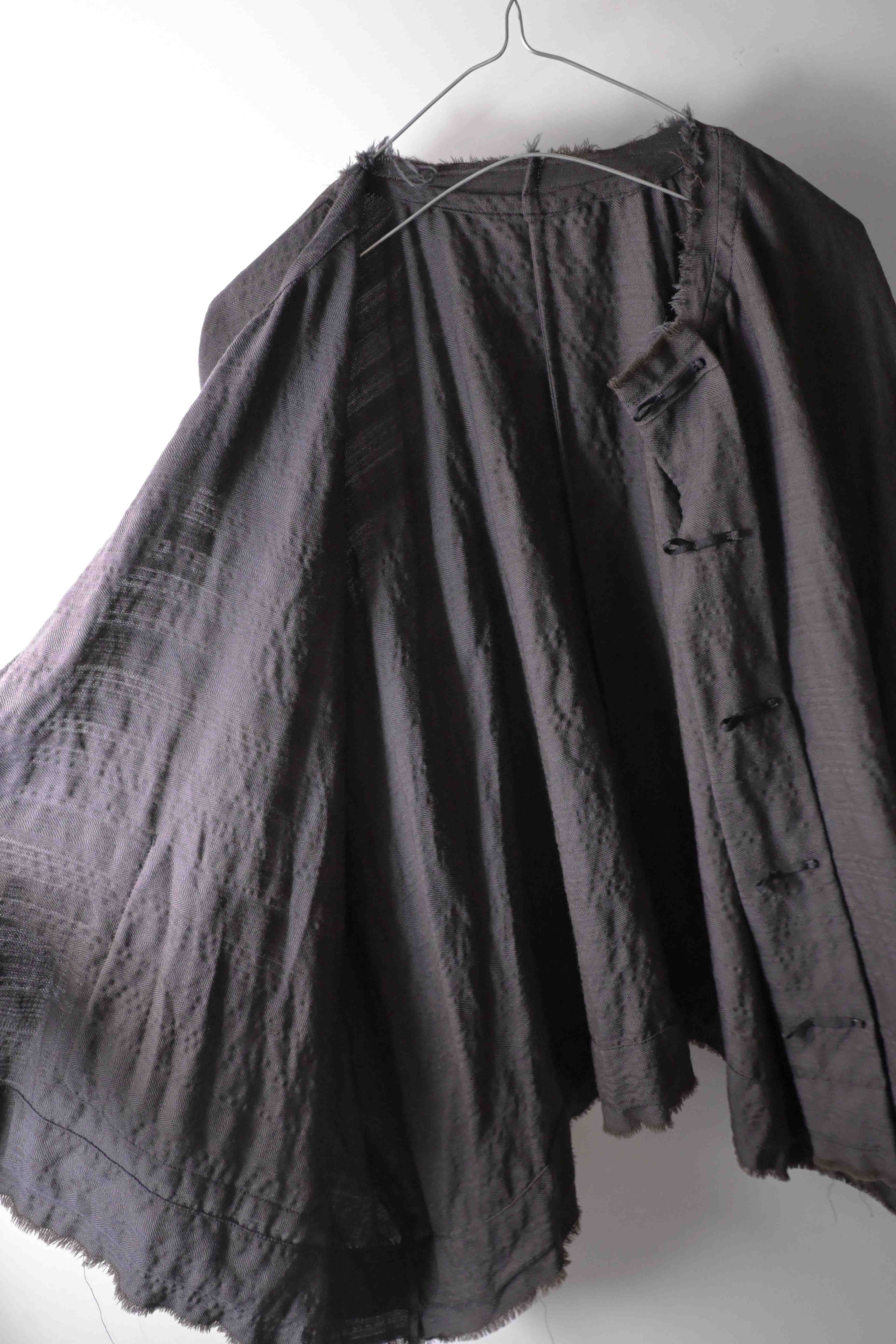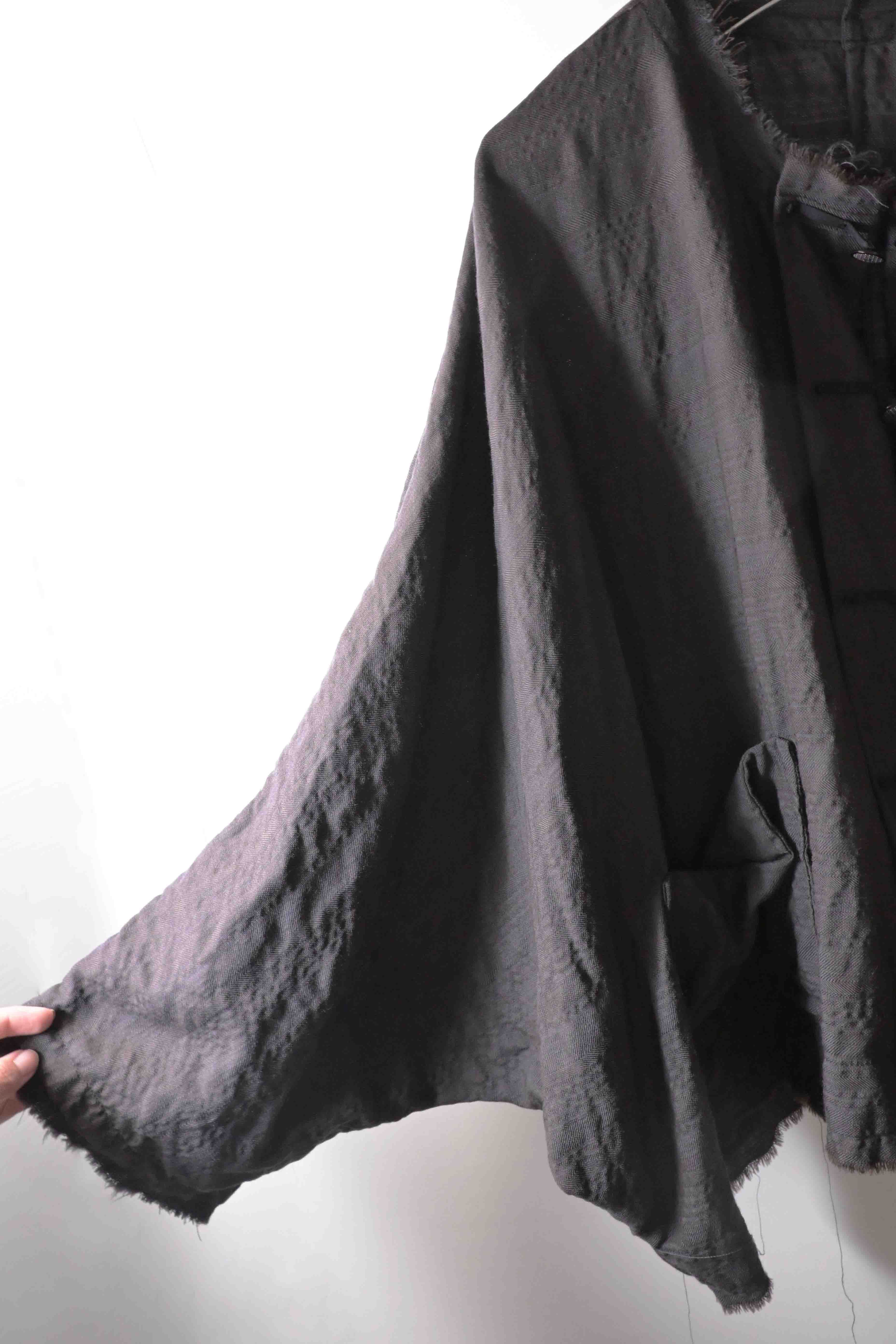 EXCLUSIVE ADVANCED DOLMAN SLEEVE WIDE BODY DESIGN - HAND DYED LUIGI PARISOTTO SUPERLIGHT PURE WOOL SUITING WITH SPECIAL DESIGN SILK HANDSTITCHED FRONT CLOSURES & FONTANA SPECIAL DESIGN REAL HORN BUTTONS